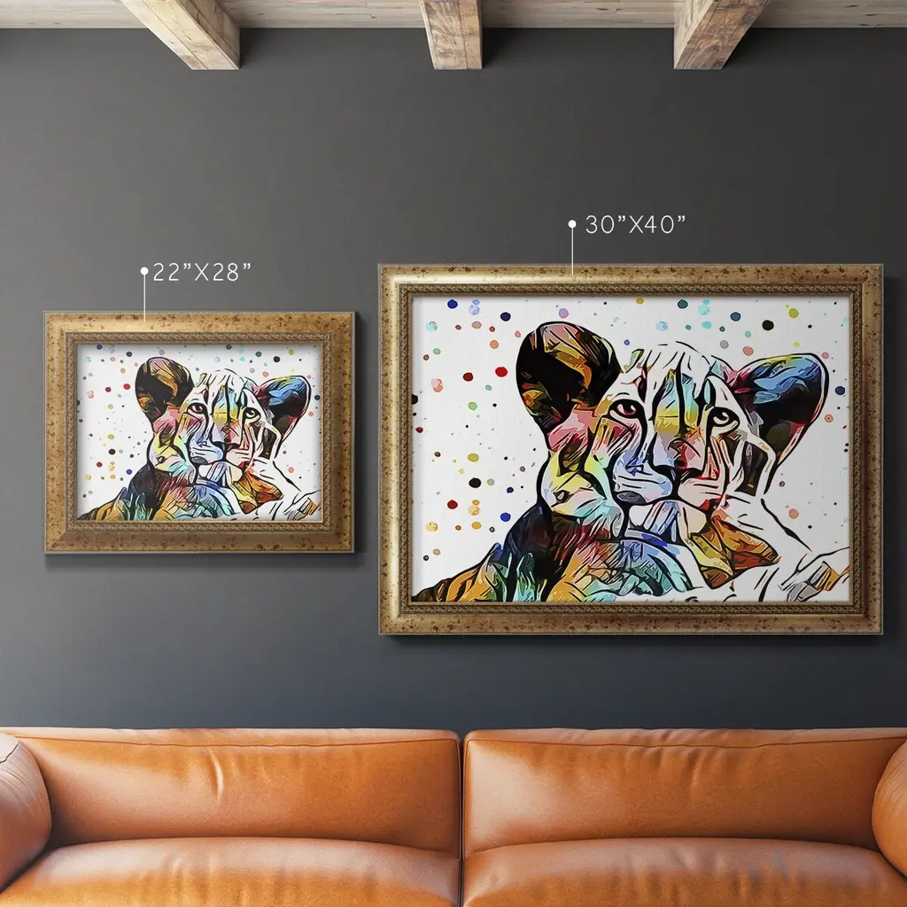 Motley Crew in Color I Premium Framed Canvas- Ready to Hang A Premium Framed Canvas created to last. Framed in distressed wood and available in an array of sizes and colors Featuring a beveled a solid wood stretcher bar, each piece comes ready to hand 3 SIZES AVAILABLE 16''X20'' - Overall Size 18'X27'' - Overall Size 24''x36'' - Overall Size Each piece is made to order. Each piece comes with hanging hardware. Made in the USA Ready to Hang Giclee Paper Print Acrylic Glass Beveled Matt Board