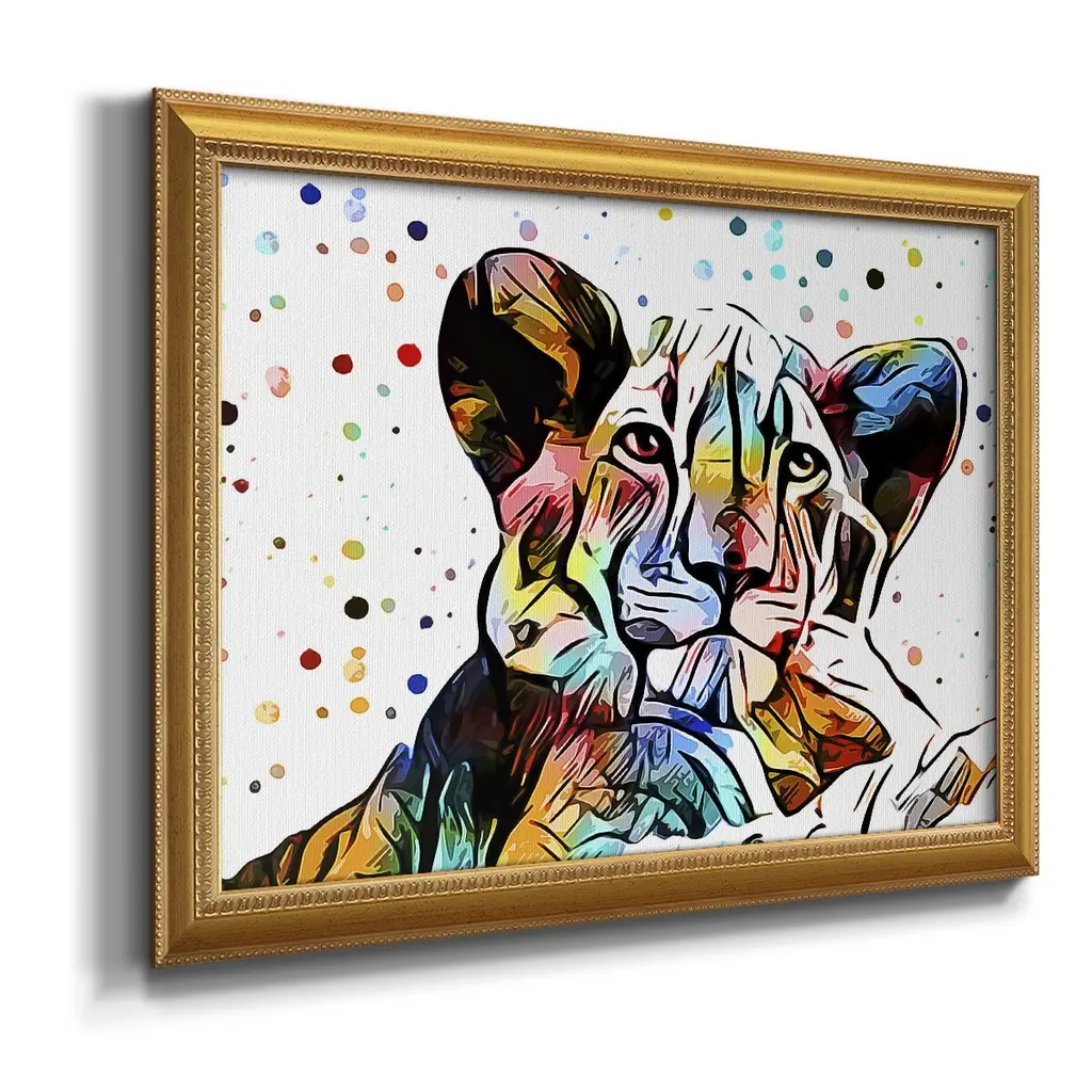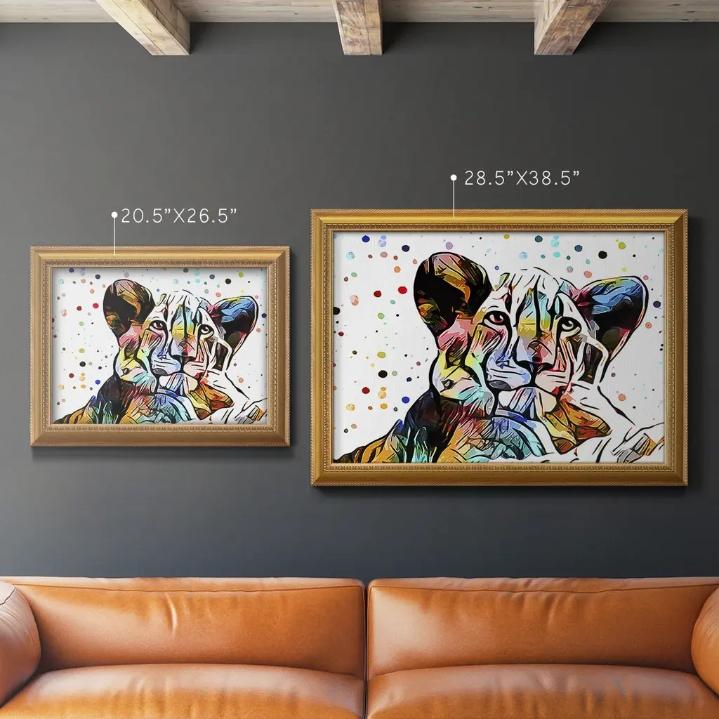 Motley Crew in Color I Premium Framed Canvas- Ready to Hang A Premium Framed Canvas created to last. Framed in distressed wood and available in an array of sizes and colors Featuring a beveled a solid wood stretcher bar, each piece comes ready to hand 3 SIZES AVAILABLE 16''X20'' - Overall Size 18'X27'' - Overall Size 24''x36'' - Overall Size Each piece is made to order. Each piece comes with hanging hardware. Made in the USA Ready to Hang Giclee Paper Print Acrylic Glass Beveled Matt Board