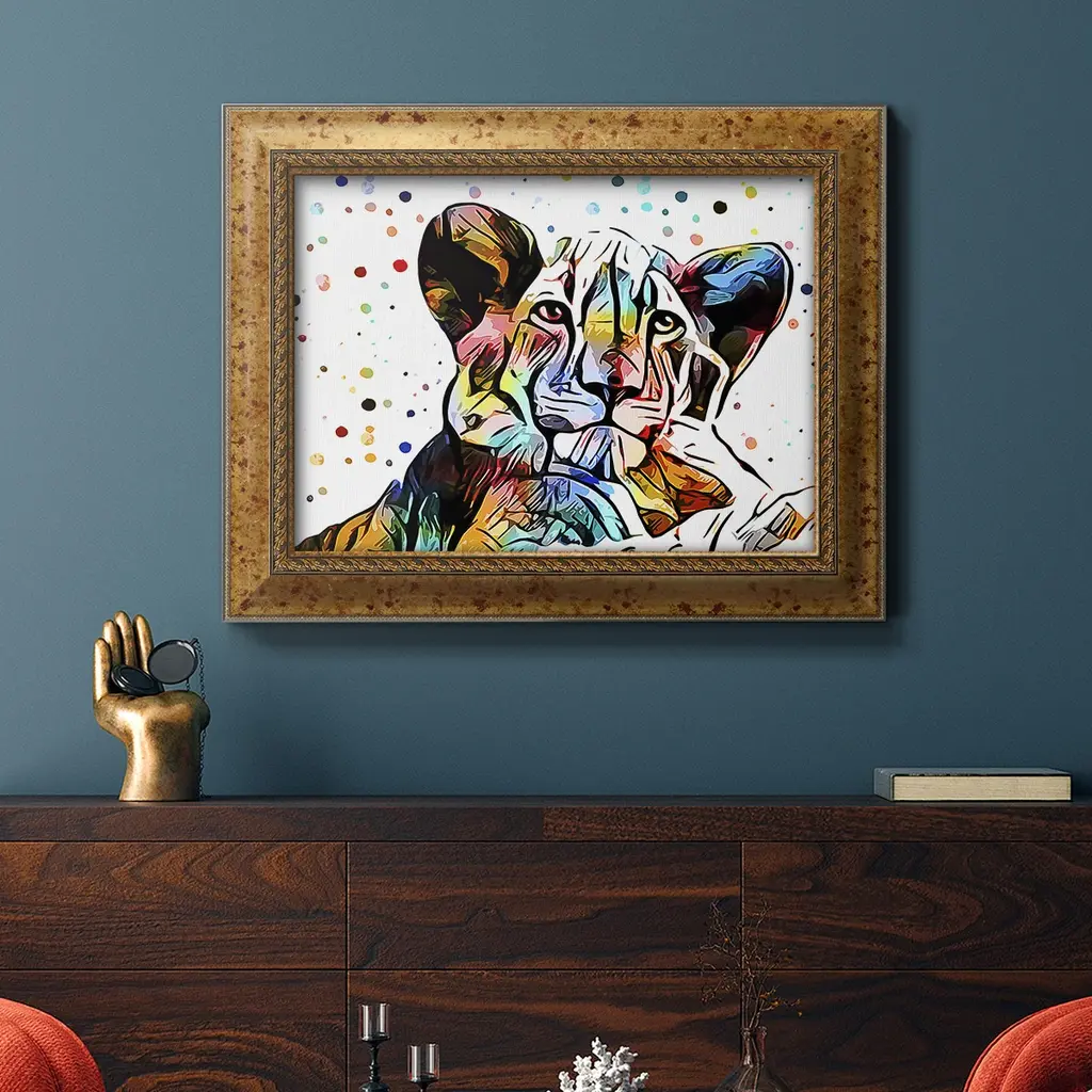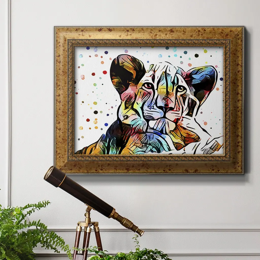 Motley Crew in Color I Premium Framed Canvas- Ready to Hang A Premium Framed Canvas created to last. Framed in distressed wood and available in an array of sizes and colors Featuring a beveled a solid wood stretcher bar, each piece comes ready to hand 3 SIZES AVAILABLE 16''X20'' - Overall Size 18'X27'' - Overall Size 24''x36'' - Overall Size Each piece is made to order. Each piece comes with hanging hardware. Made in the USA Ready to Hang Giclee Paper Print Acrylic Glass Beveled Matt Board