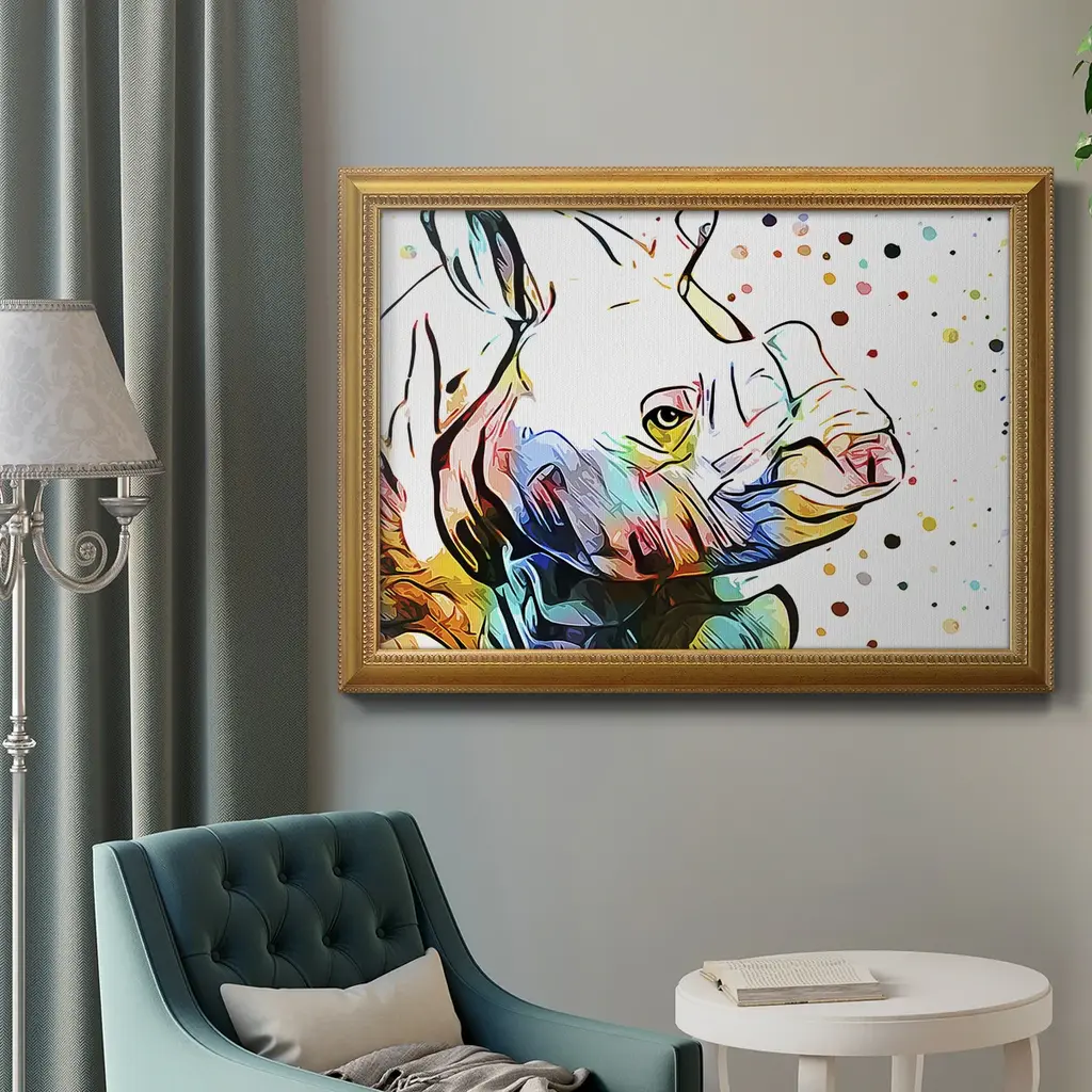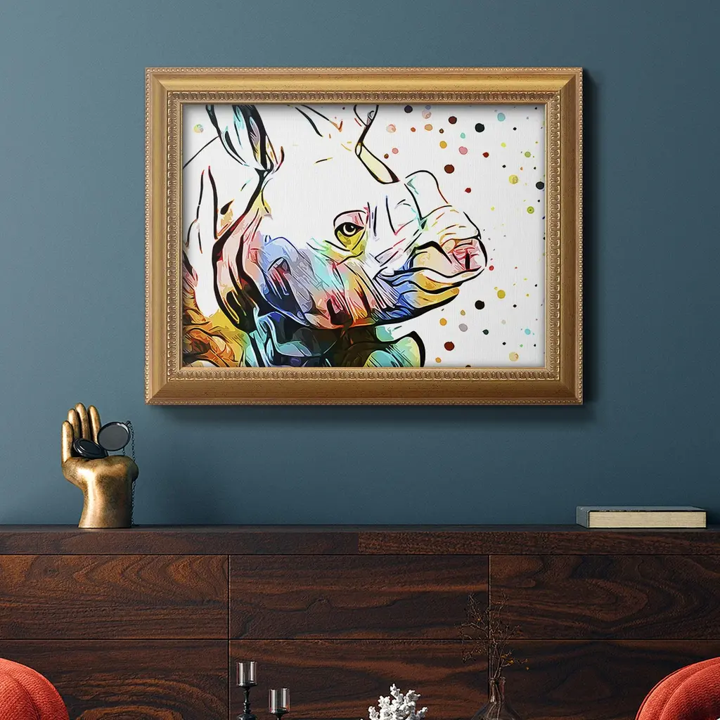 Motley Crew in Color IV Premium Framed Canvas- Ready to Hang A Premium Framed Canvas created to last. Framed in distressed wood and available in an array of sizes and colors Featuring a beveled a solid wood stretcher bar, each piece comes ready to hand 3 SIZES AVAILABLE 16''X20'' - Overall Size 18'X27'' - Overall Size 24''x36'' - Overall Size Each piece is made to order. Each piece comes with hanging hardware. Made in the USA Ready to Hang Giclee Paper Print Acrylic Glass Beveled Matt Board