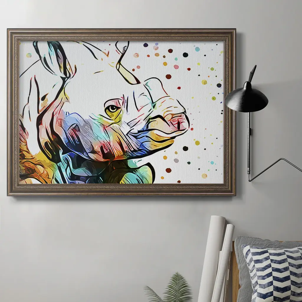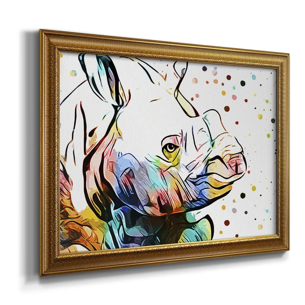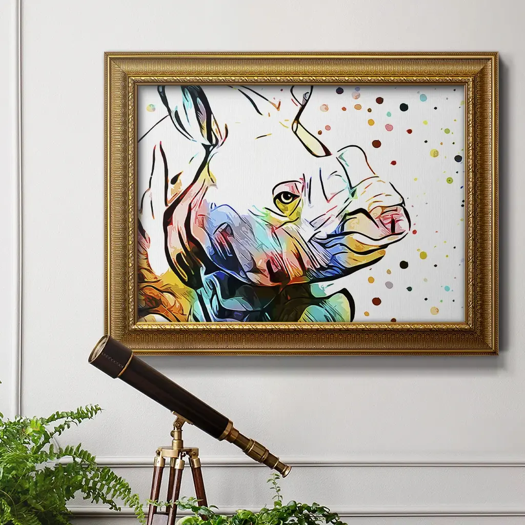 Motley Crew in Color IV Premium Framed Canvas- Ready to Hang A Premium Framed Canvas created to last. Framed in distressed wood and available in an array of sizes and colors Featuring a beveled a solid wood stretcher bar, each piece comes ready to hand 3 SIZES AVAILABLE 16''X20'' - Overall Size 18'X27'' - Overall Size 24''x36'' - Overall Size Each piece is made to order. Each piece comes with hanging hardware. Made in the USA Ready to Hang Giclee Paper Print Acrylic Glass Beveled Matt Board