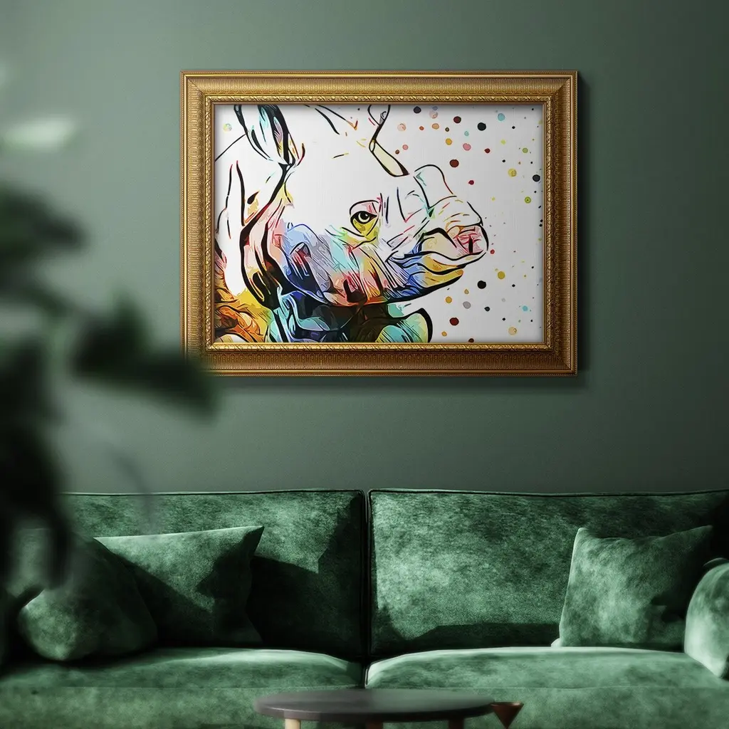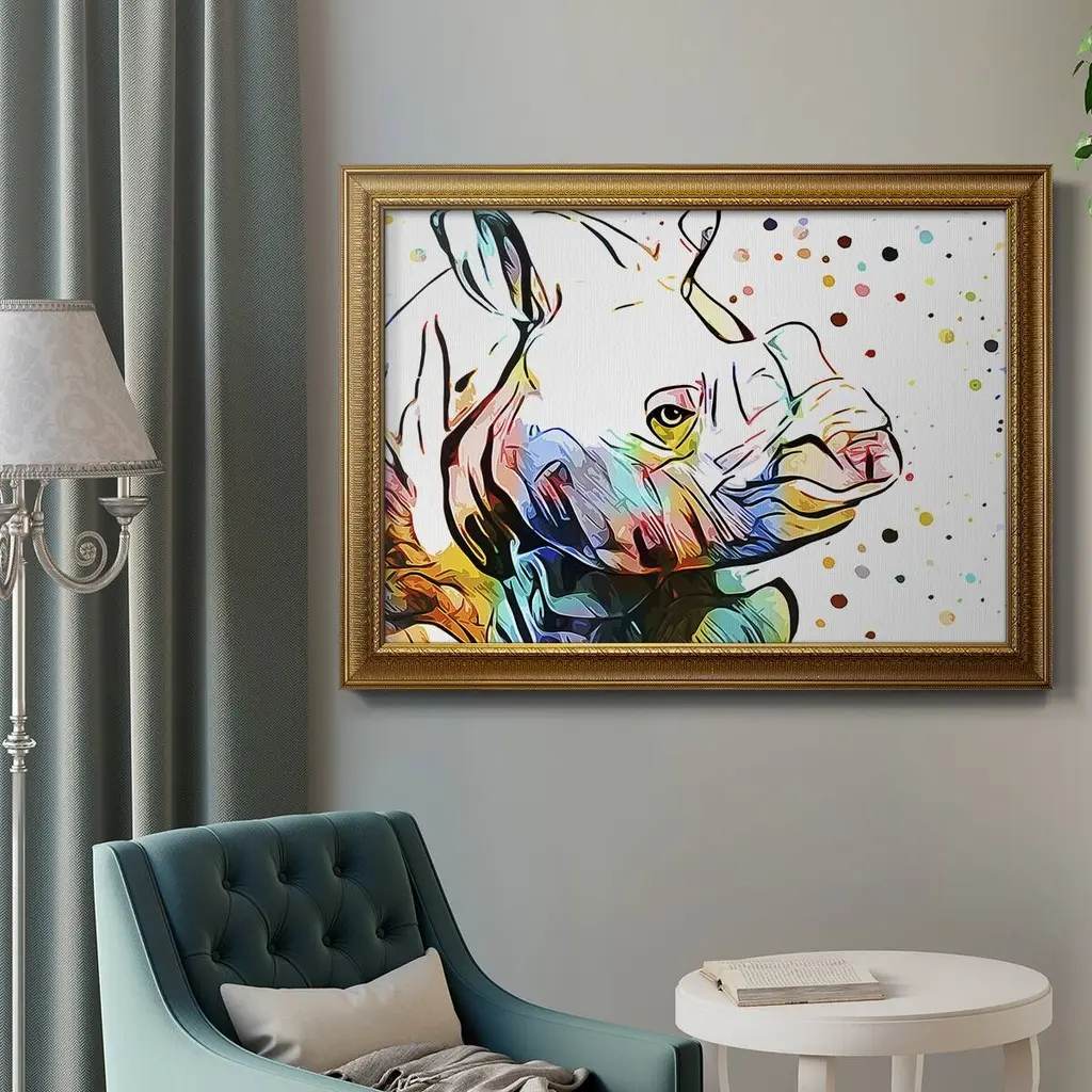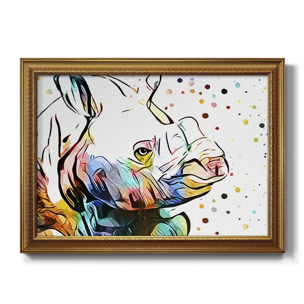 Motley Crew in Color IV Premium Framed Canvas- Ready to Hang A Premium Framed Canvas created to last. Framed in distressed wood and available in an array of sizes and colors Featuring a beveled a solid wood stretcher bar, each piece comes ready to hand 3 SIZES AVAILABLE 16''X20'' - Overall Size 18'X27'' - Overall Size 24''x36'' - Overall Size Each piece is made to order. Each piece comes with hanging hardware. Made in the USA Ready to Hang Giclee Paper Print Acrylic Glass Beveled Matt Board