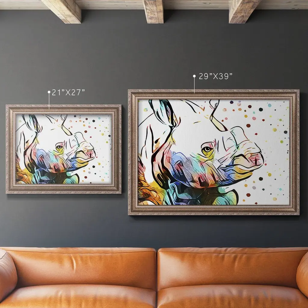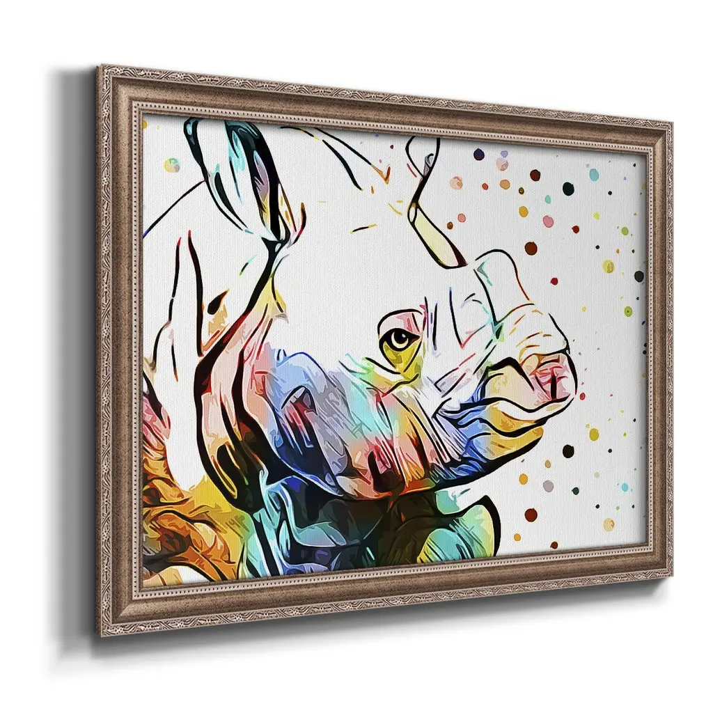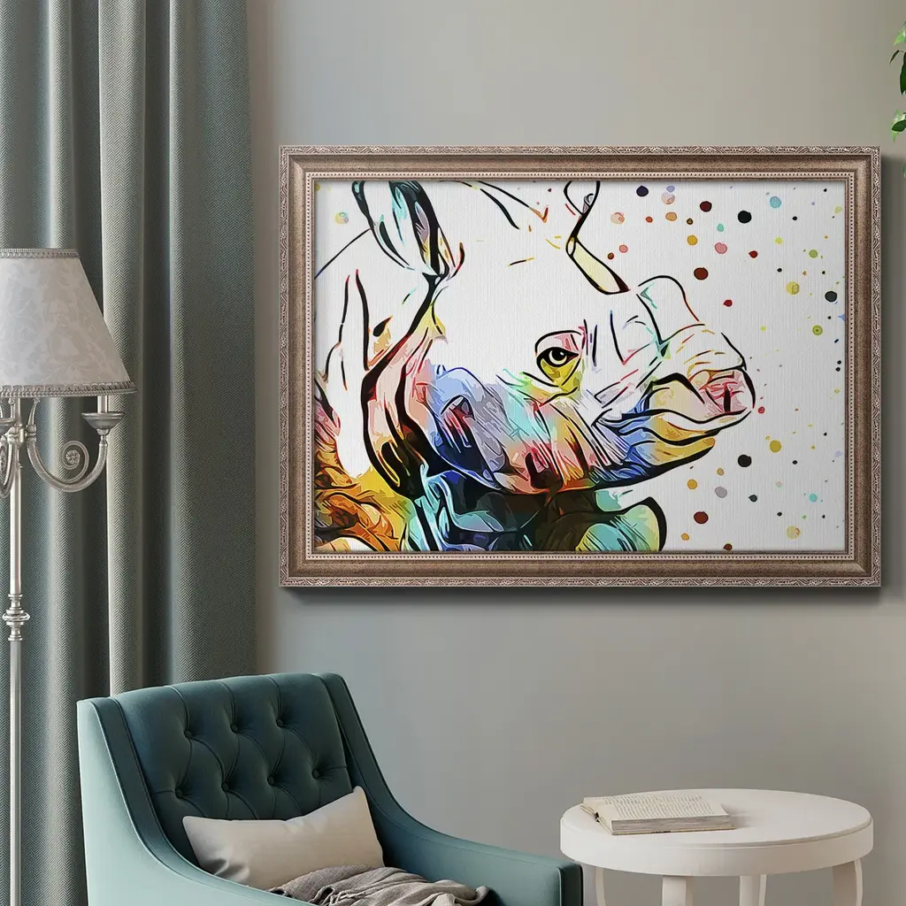 Motley Crew in Color IV Premium Framed Canvas- Ready to Hang A Premium Framed Canvas created to last. Framed in distressed wood and available in an array of sizes and colors Featuring a beveled a solid wood stretcher bar, each piece comes ready to hand 3 SIZES AVAILABLE 16''X20'' - Overall Size 18'X27'' - Overall Size 24''x36'' - Overall Size Each piece is made to order. Each piece comes with hanging hardware. Made in the USA Ready to Hang Giclee Paper Print Acrylic Glass Beveled Matt Board