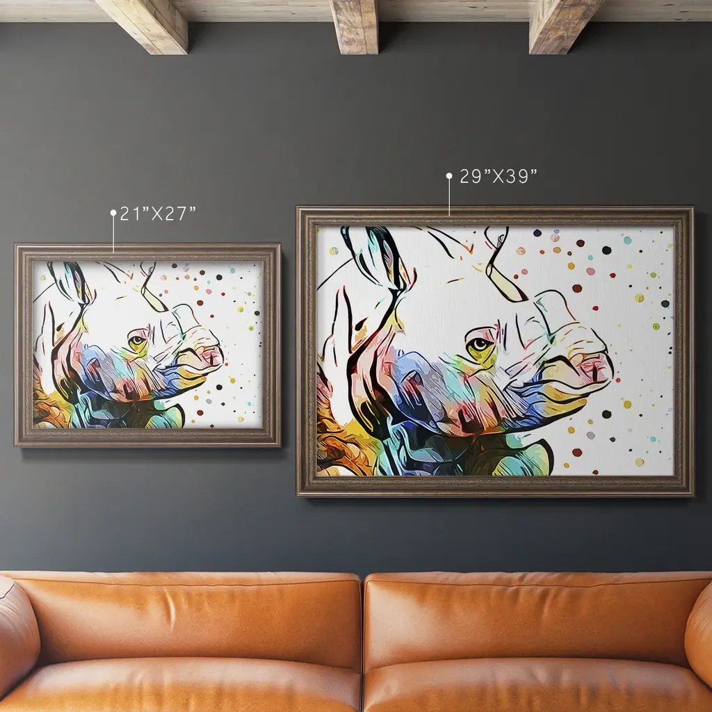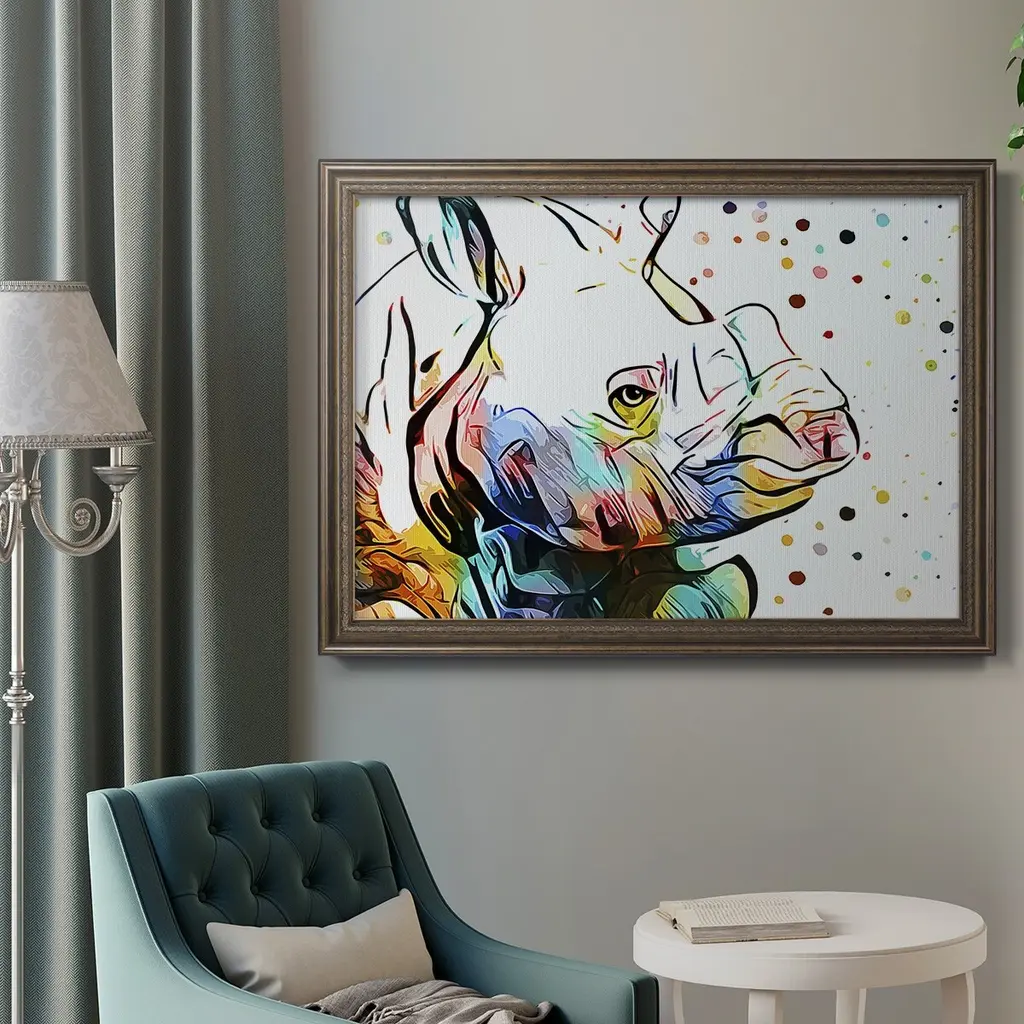 Motley Crew in Color IV Premium Framed Canvas- Ready to Hang A Premium Framed Canvas created to last. Framed in distressed wood and available in an array of sizes and colors Featuring a beveled a solid wood stretcher bar, each piece comes ready to hand 3 SIZES AVAILABLE 16''X20'' - Overall Size 18'X27'' - Overall Size 24''x36'' - Overall Size Each piece is made to order. Each piece comes with hanging hardware. Made in the USA Ready to Hang Giclee Paper Print Acrylic Glass Beveled Matt Board