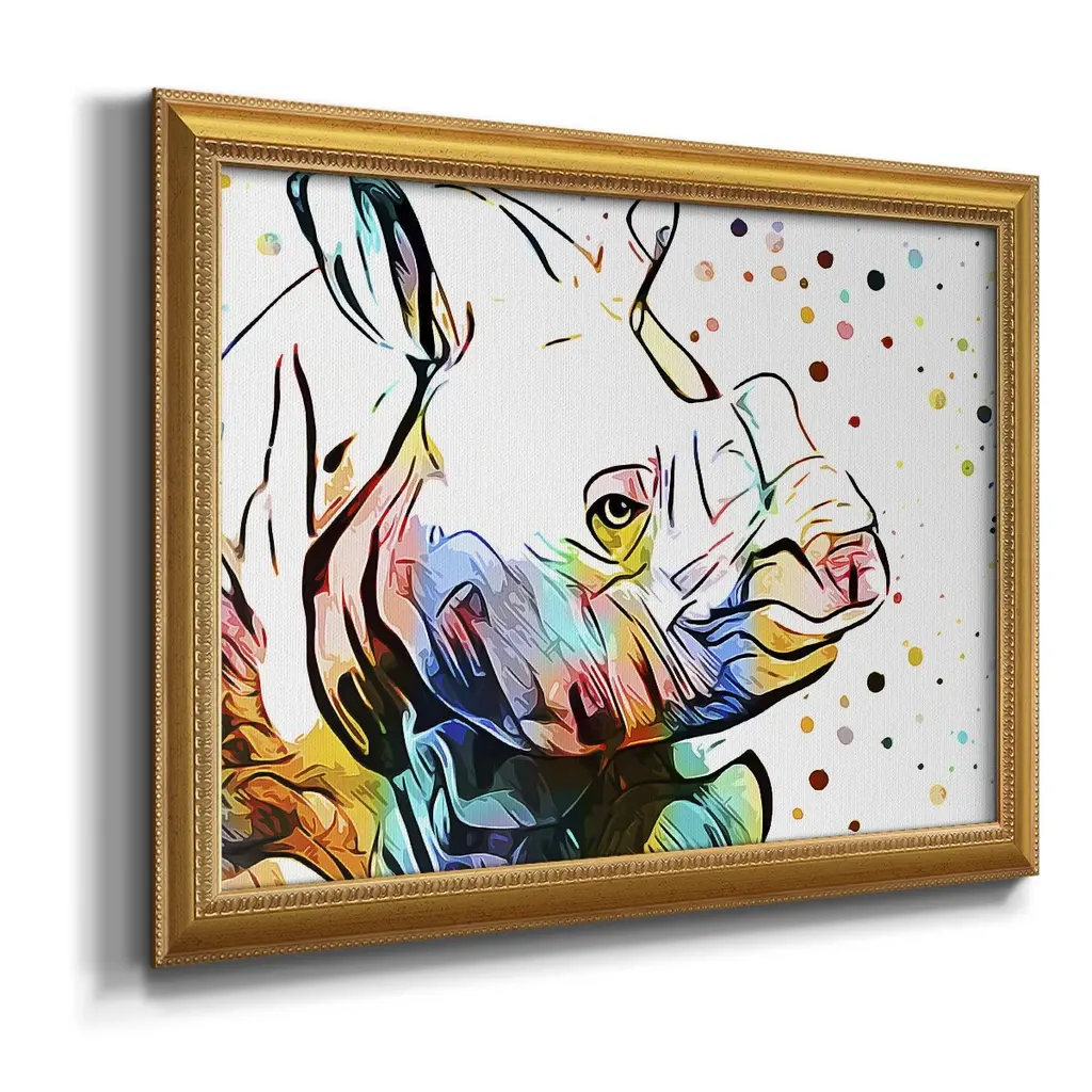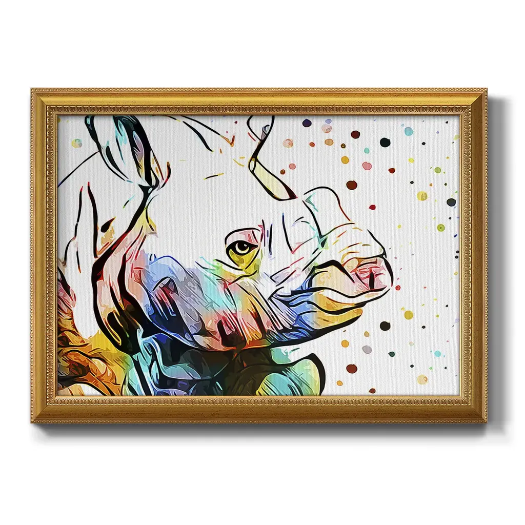Motley Crew in Color IV Premium Framed Canvas- Ready to Hang A Premium Framed Canvas created to last. Framed in distressed wood and available in an array of sizes and colors Featuring a beveled a solid wood stretcher bar, each piece comes ready to hand 3 SIZES AVAILABLE 16''X20'' - Overall Size 18'X27'' - Overall Size 24''x36'' - Overall Size Each piece is made to order. Each piece comes with hanging hardware. Made in the USA Ready to Hang Giclee Paper Print Acrylic Glass Beveled Matt Board