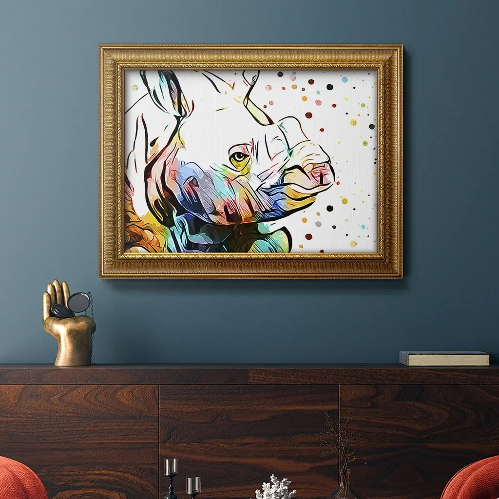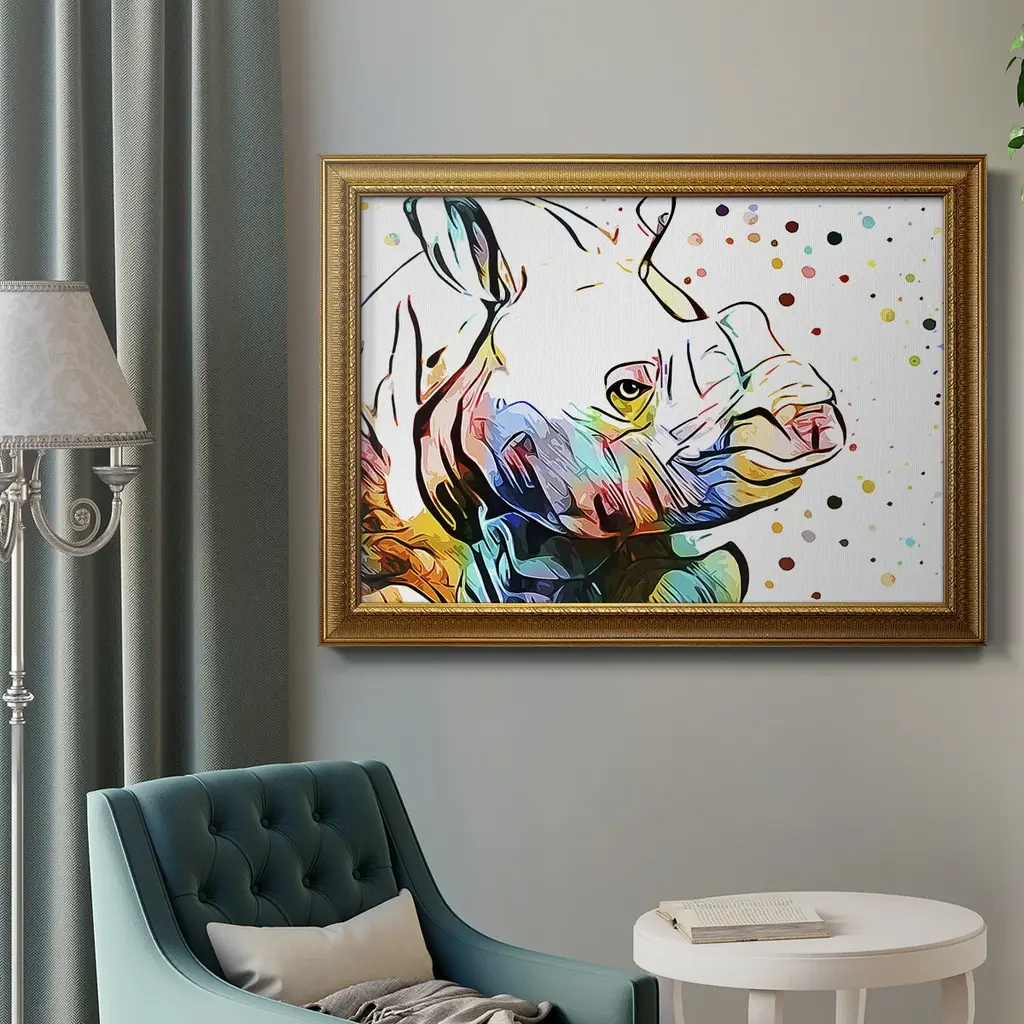 Motley Crew in Color IV Premium Framed Canvas- Ready to Hang A Premium Framed Canvas created to last. Framed in distressed wood and available in an array of sizes and colors Featuring a beveled a solid wood stretcher bar, each piece comes ready to hand 3 SIZES AVAILABLE 16''X20'' - Overall Size 18'X27'' - Overall Size 24''x36'' - Overall Size Each piece is made to order. Each piece comes with hanging hardware. Made in the USA Ready to Hang Giclee Paper Print Acrylic Glass Beveled Matt Board