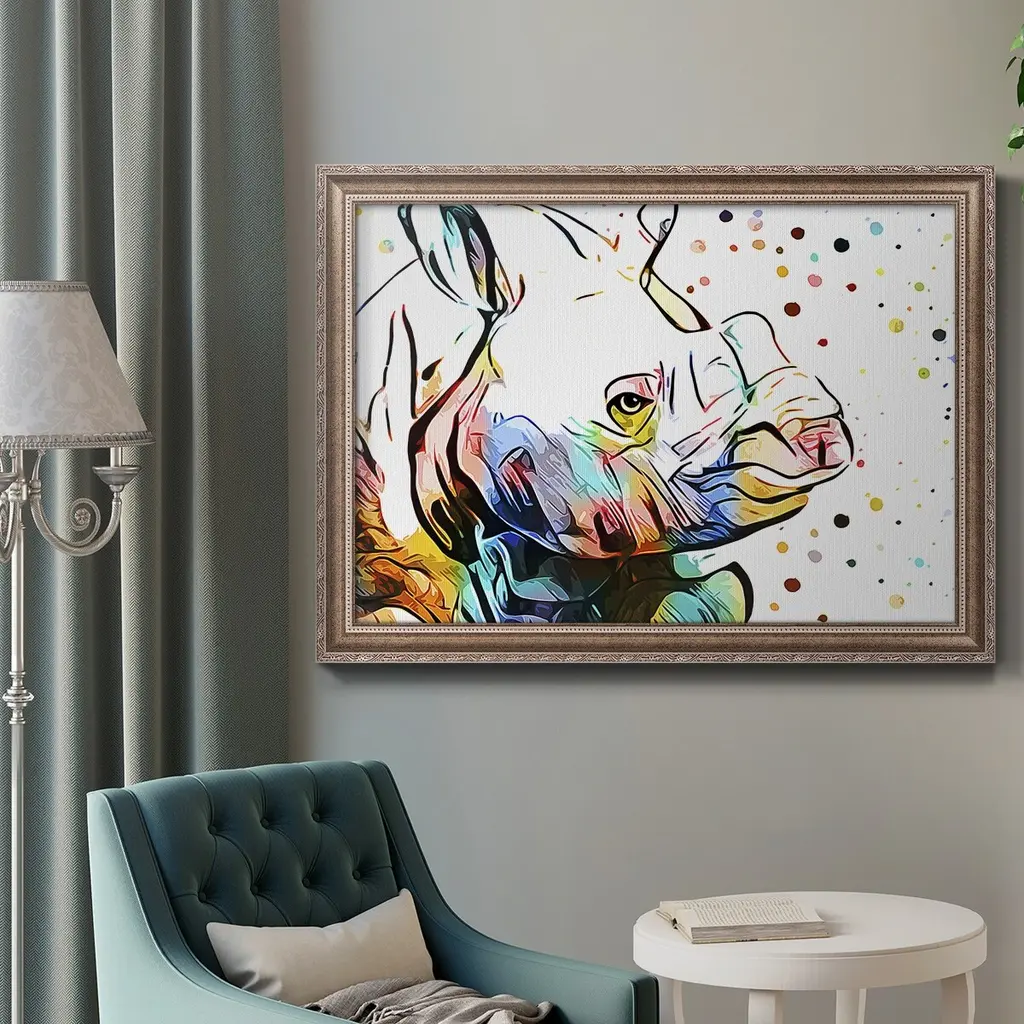 Motley Crew in Color IV Premium Framed Canvas- Ready to Hang A Premium Framed Canvas created to last. Framed in distressed wood and available in an array of sizes and colors Featuring a beveled a solid wood stretcher bar, each piece comes ready to hand 3 SIZES AVAILABLE 16''X20'' - Overall Size 18'X27'' - Overall Size 24''x36'' - Overall Size Each piece is made to order. Each piece comes with hanging hardware. Made in the USA Ready to Hang Giclee Paper Print Acrylic Glass Beveled Matt Board