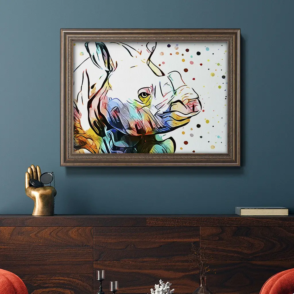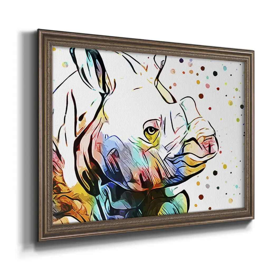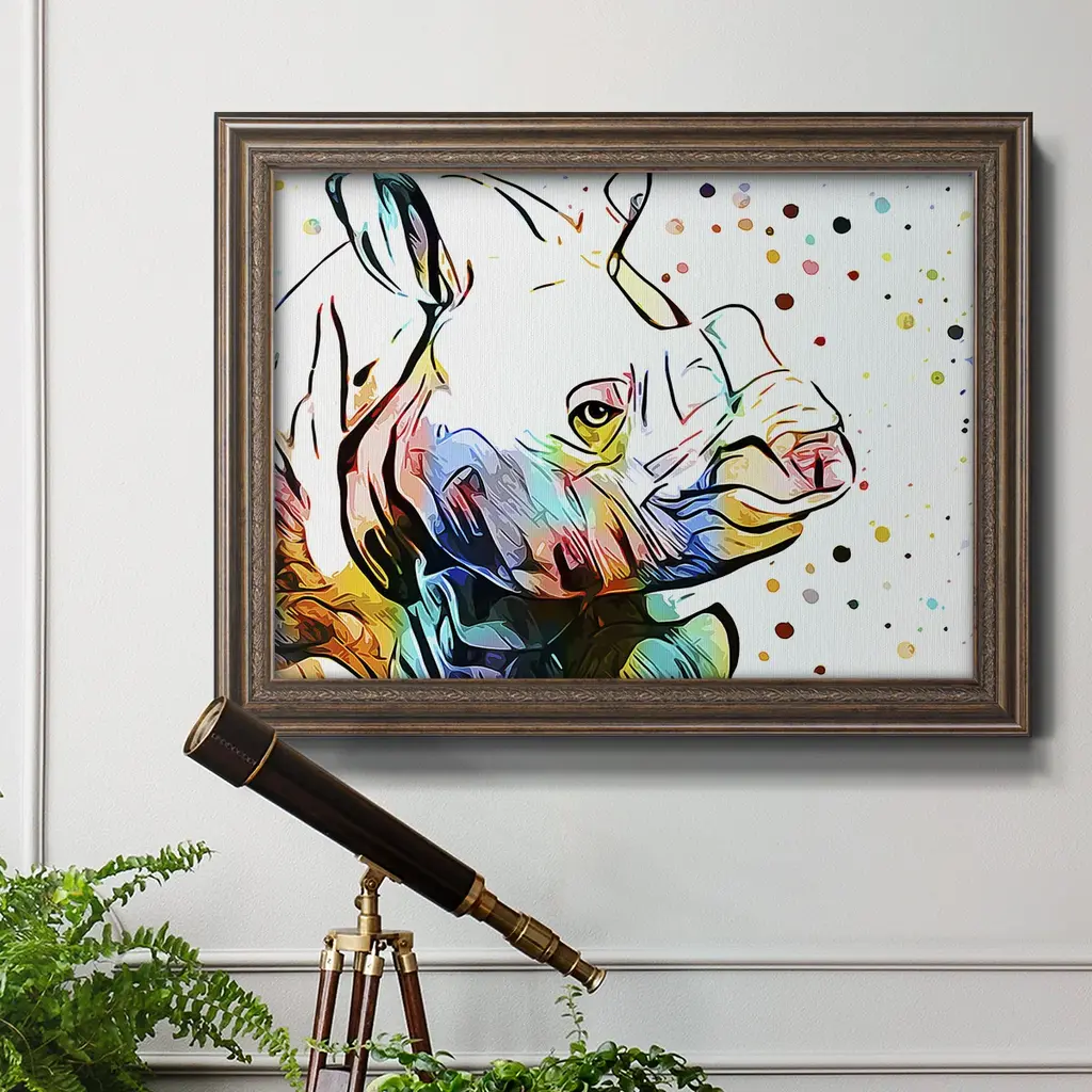 Motley Crew in Color IV Premium Framed Canvas- Ready to Hang A Premium Framed Canvas created to last. Framed in distressed wood and available in an array of sizes and colors Featuring a beveled a solid wood stretcher bar, each piece comes ready to hand 3 SIZES AVAILABLE 16''X20'' - Overall Size 18'X27'' - Overall Size 24''x36'' - Overall Size Each piece is made to order. Each piece comes with hanging hardware. Made in the USA Ready to Hang Giclee Paper Print Acrylic Glass Beveled Matt Board