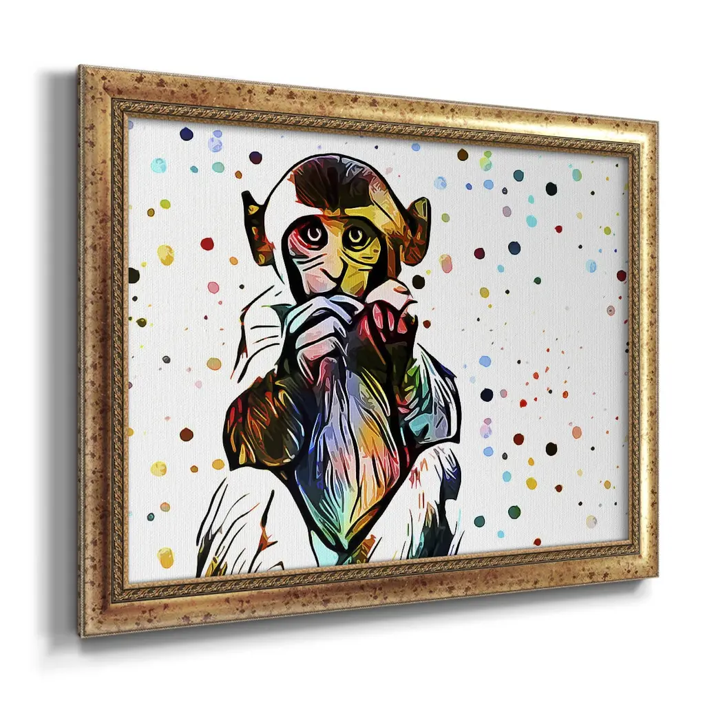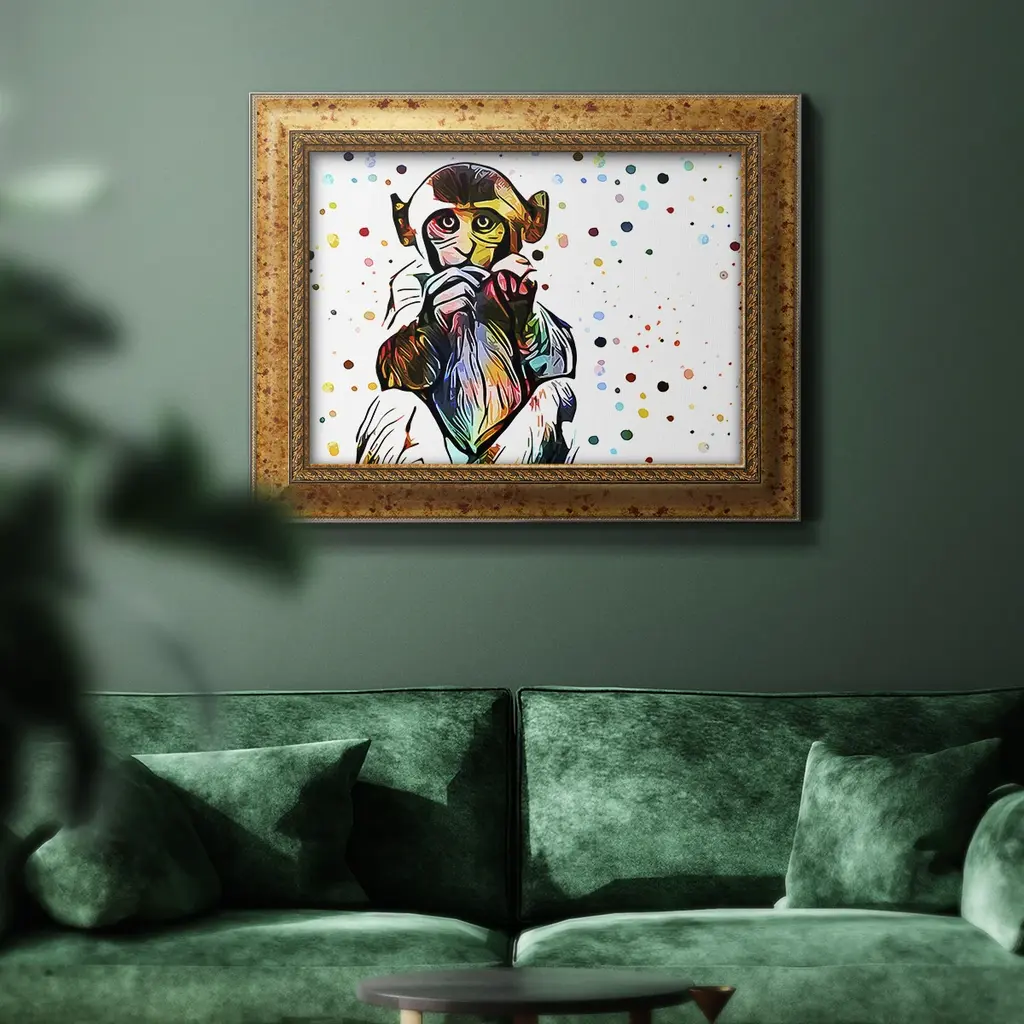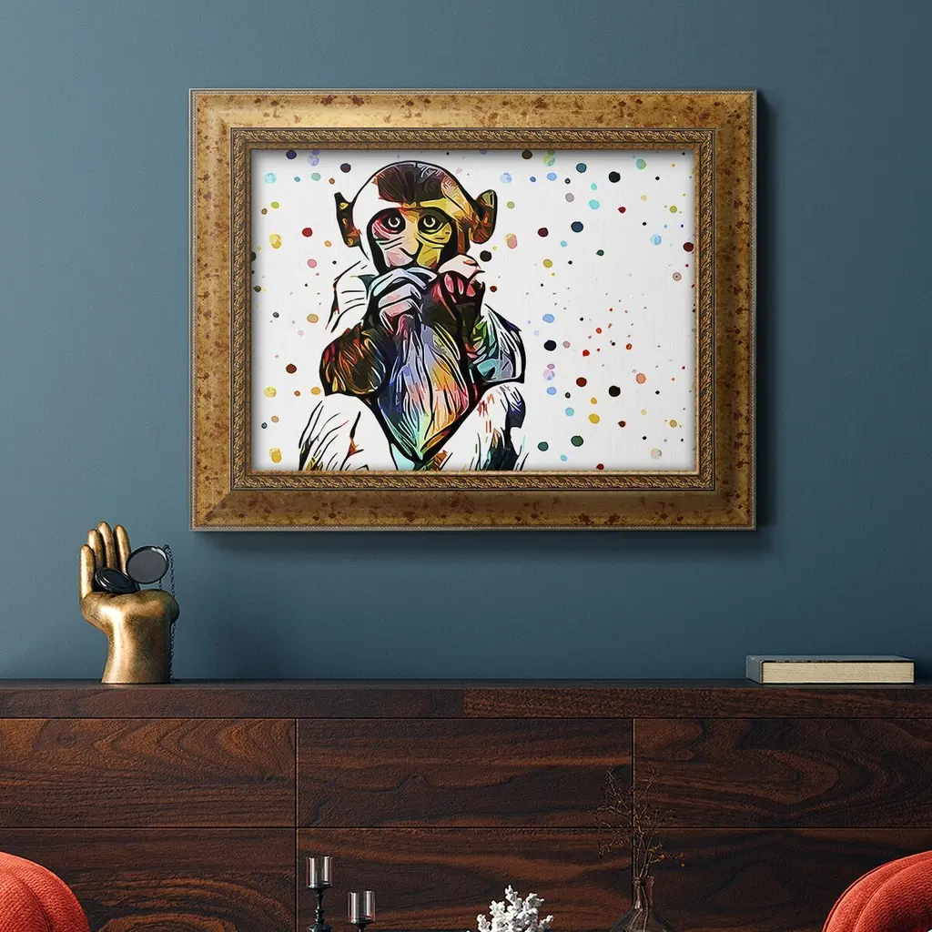 Motley Crew in Color V Premium Framed Canvas- Ready to Hang A Premium Framed Canvas created to last. Framed in distressed wood and available in an array of sizes and colors Featuring a beveled a solid wood stretcher bar, each piece comes ready to hand 3 SIZES AVAILABLE 16''X20'' - Overall Size 18'X27'' - Overall Size 24''x36'' - Overall Size Each piece is made to order. Each piece comes with hanging hardware. Made in the USA Ready to Hang Giclee Paper Print Acrylic Glass Beveled Matt Board
