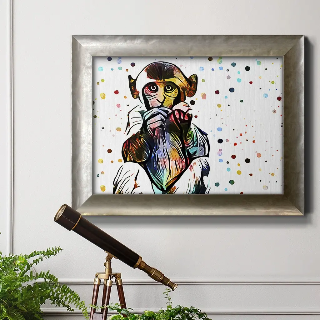 Motley Crew in Color V Premium Framed Canvas- Ready to Hang A Premium Framed Canvas created to last. Framed in distressed wood and available in an array of sizes and colors Featuring a beveled a solid wood stretcher bar, each piece comes ready to hand 3 SIZES AVAILABLE 16''X20'' - Overall Size 18'X27'' - Overall Size 24''x36'' - Overall Size Each piece is made to order. Each piece comes with hanging hardware. Made in the USA Ready to Hang Giclee Paper Print Acrylic Glass Beveled Matt Board