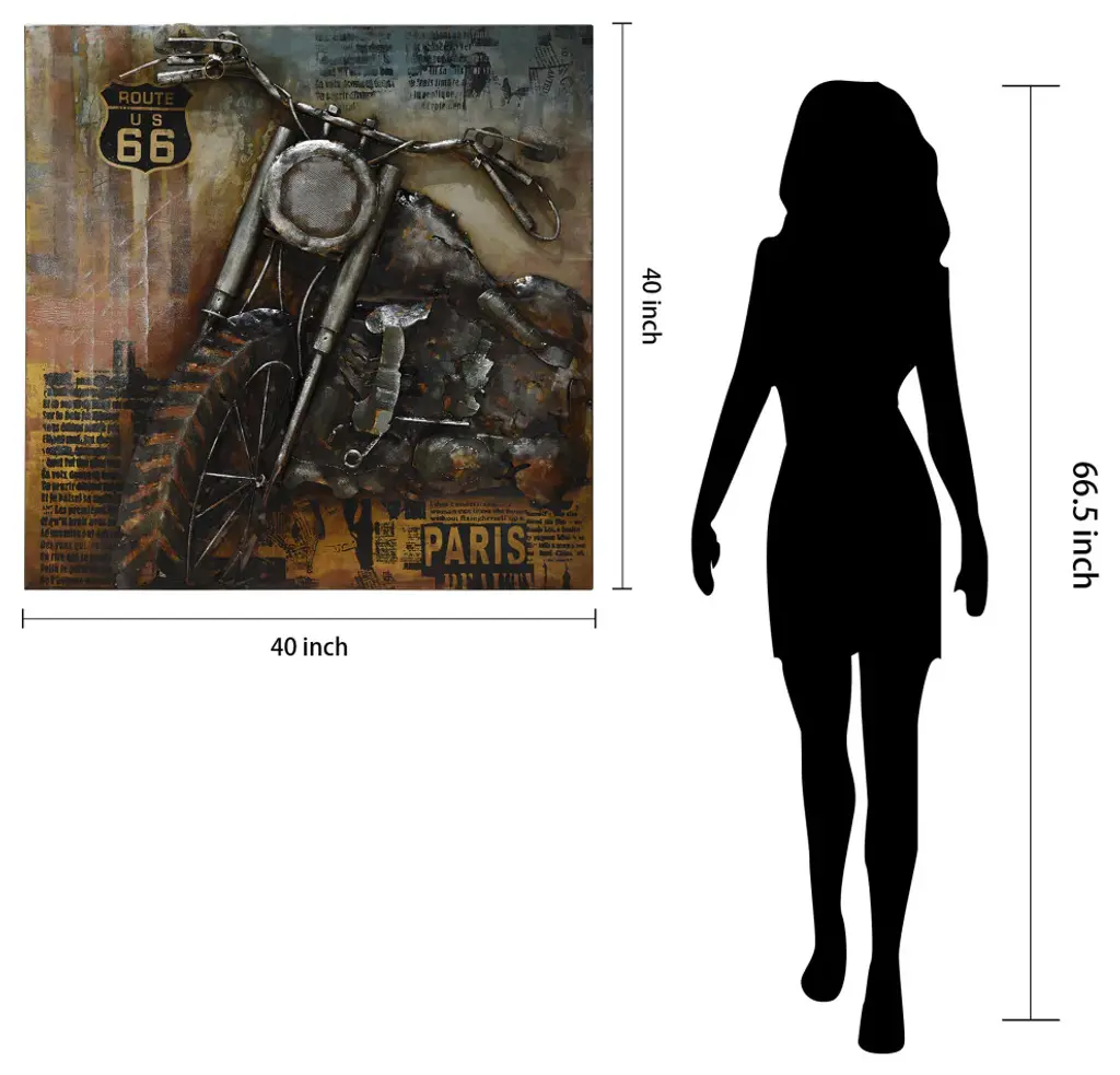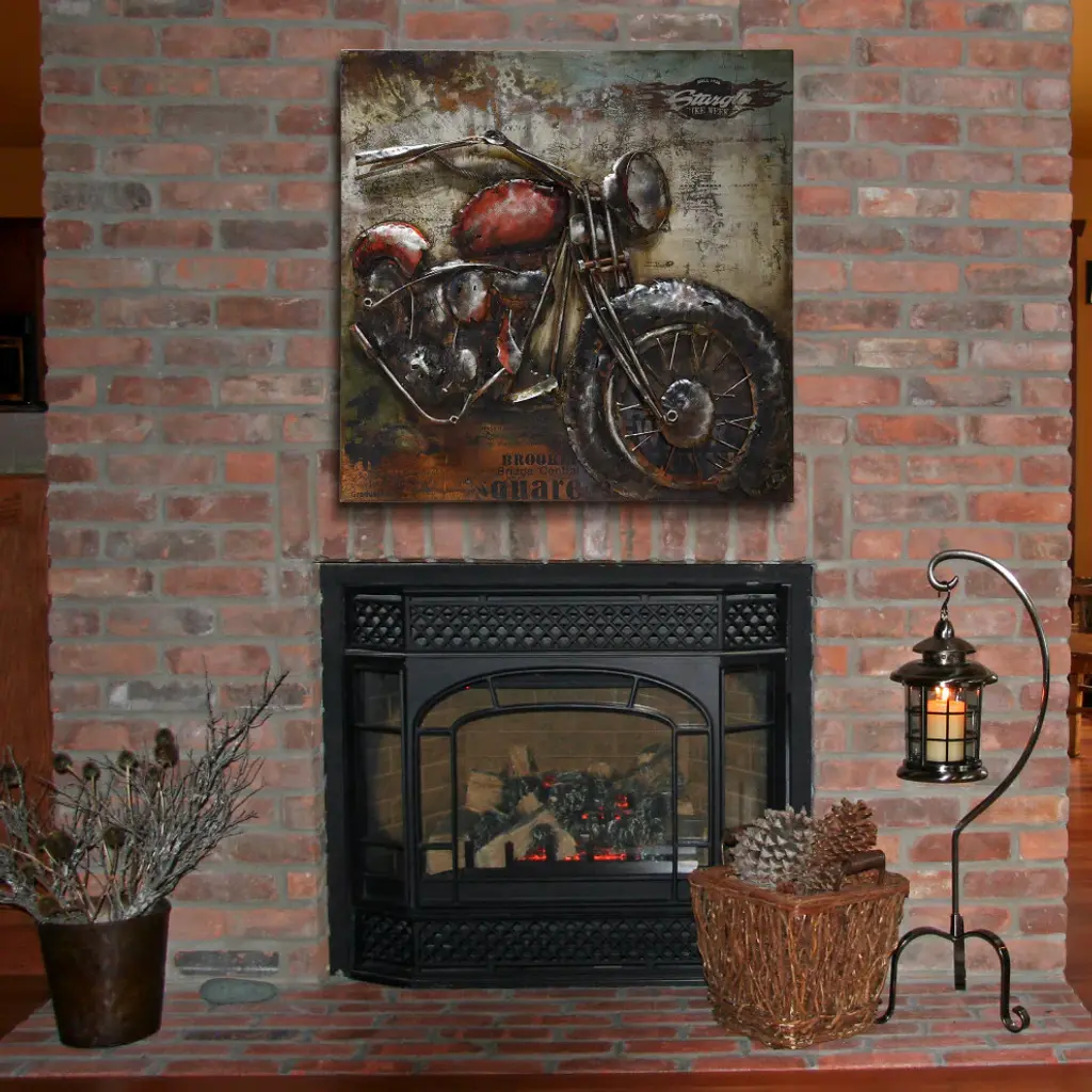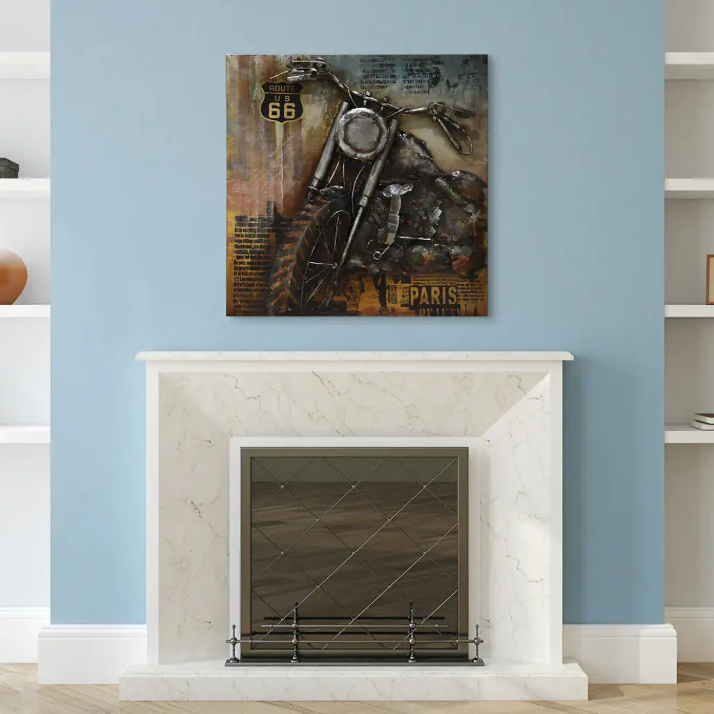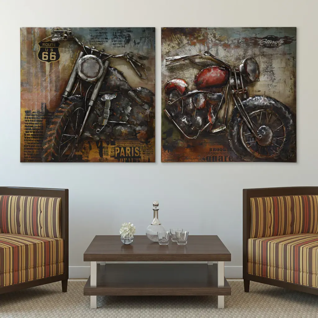 Motorcycle Diptych Set Mixed Media Iron Hand Painted Dimensional Wall Art