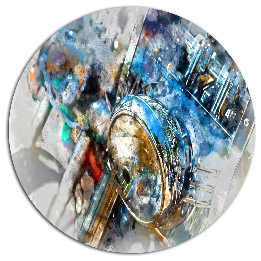 Bring Contemporary Abstraction to your home with this large Circle Metal wall art. This Motorcycle Engine Watercolor Metal Artwork makes it the focal point of any room or office. - White Gloss Coating ensures colors are extra vibrant with light reflection.- Aluminum grade Sheet Metal with 1 inch mounting frame on the back giving the illusion that the artwork is floating on the wall..- Mounting Brackets are included along with instructions.- High Quality Digital images are created directly into a glossy aluminum panel producing a stunning and captivating print into the glossy finish of the metal.- Water, Fire and Scratch resistant HD Aluminum panels.- Looks better than any photo paper and guaranteed to last at least 20 years- Easy to clean with a microfiber cloth. Colors are far superior to regular Canvas Art. - Easy to Hang