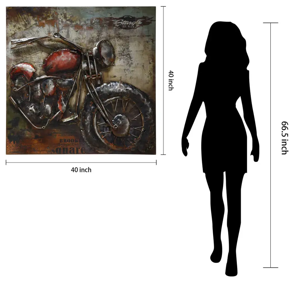 Motorcycle Metal Wall Art Primo Mixed Media Hand Painted 3D Wall Sculpture