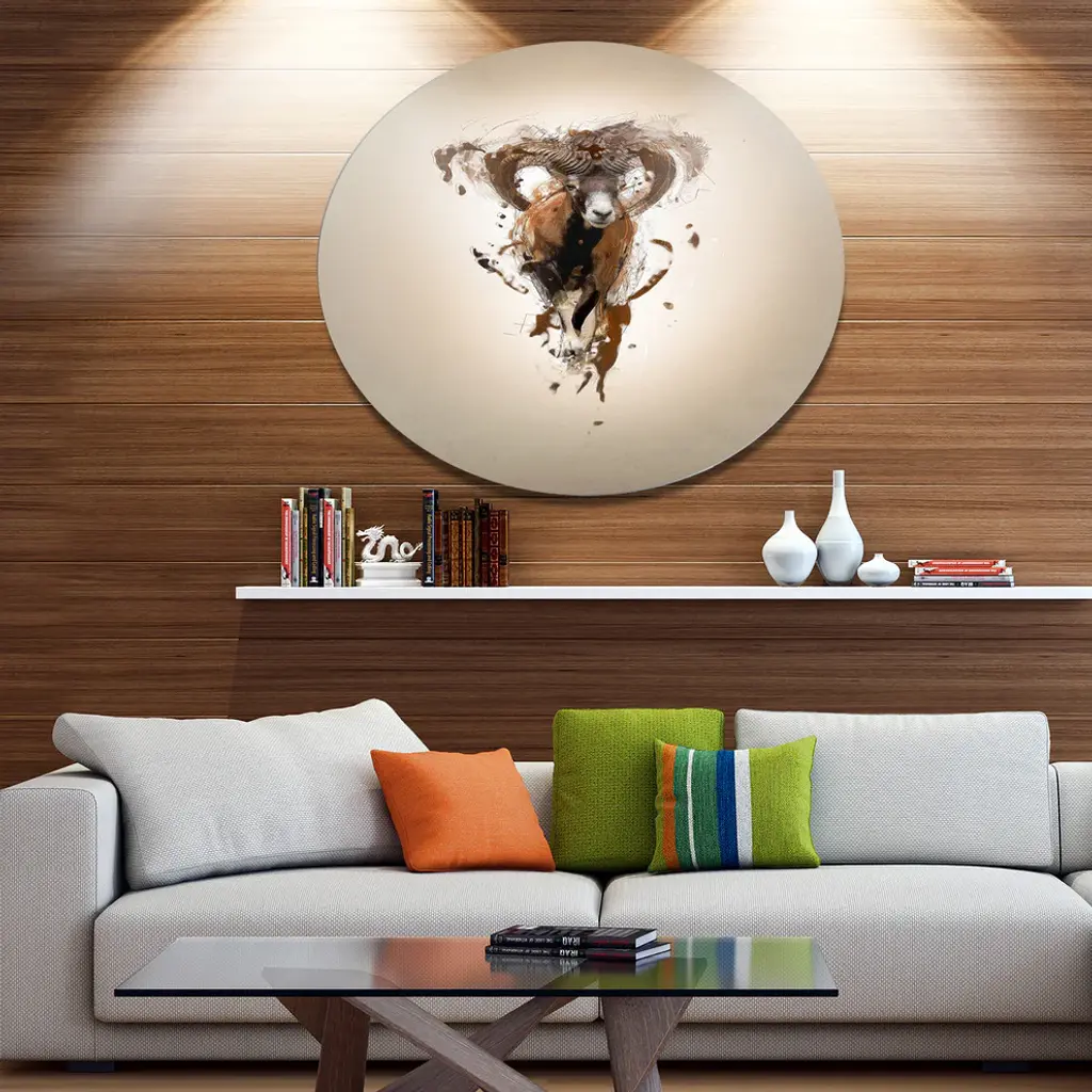 Mouflon Abstract Walking, Animal Round Wall Art, 23"