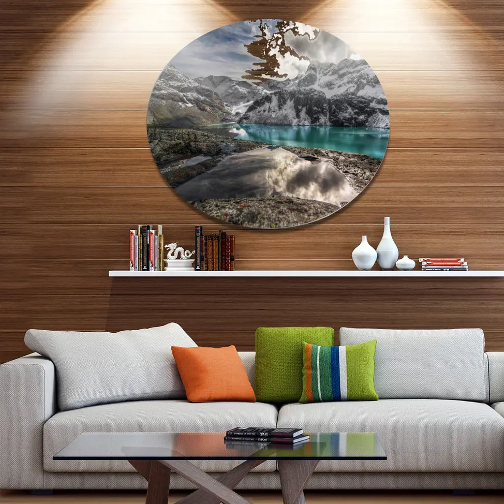 Bring Contemporary Abstraction to your home with this large Circle Metal wall art. This Mountain Creek under Cloudy Sky Metal Artwork makes it the focal point of any room or office. - White Gloss Coating ensures colors are extra vibrant with light reflection.- Aluminum grade Sheet Metal with 1 inch mounting frame on the back giving the illusion that the artwork is floating on the wall..- Mounting Brackets are included along with instructions.- High Quality Digital images are created directly into a glossy aluminum panel producing a stunning and captivating print into the glossy finish of the metal.- Water, Fire and Scratch resistant HD Aluminum panels.- Looks better than any photo paper and guaranteed to last at least 20 years- Easy to clean with a microfiber cloth. Colors are far superior to regular Canvas Art. - Easy to Hang