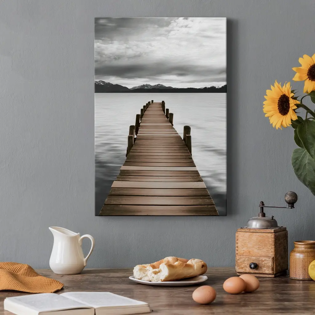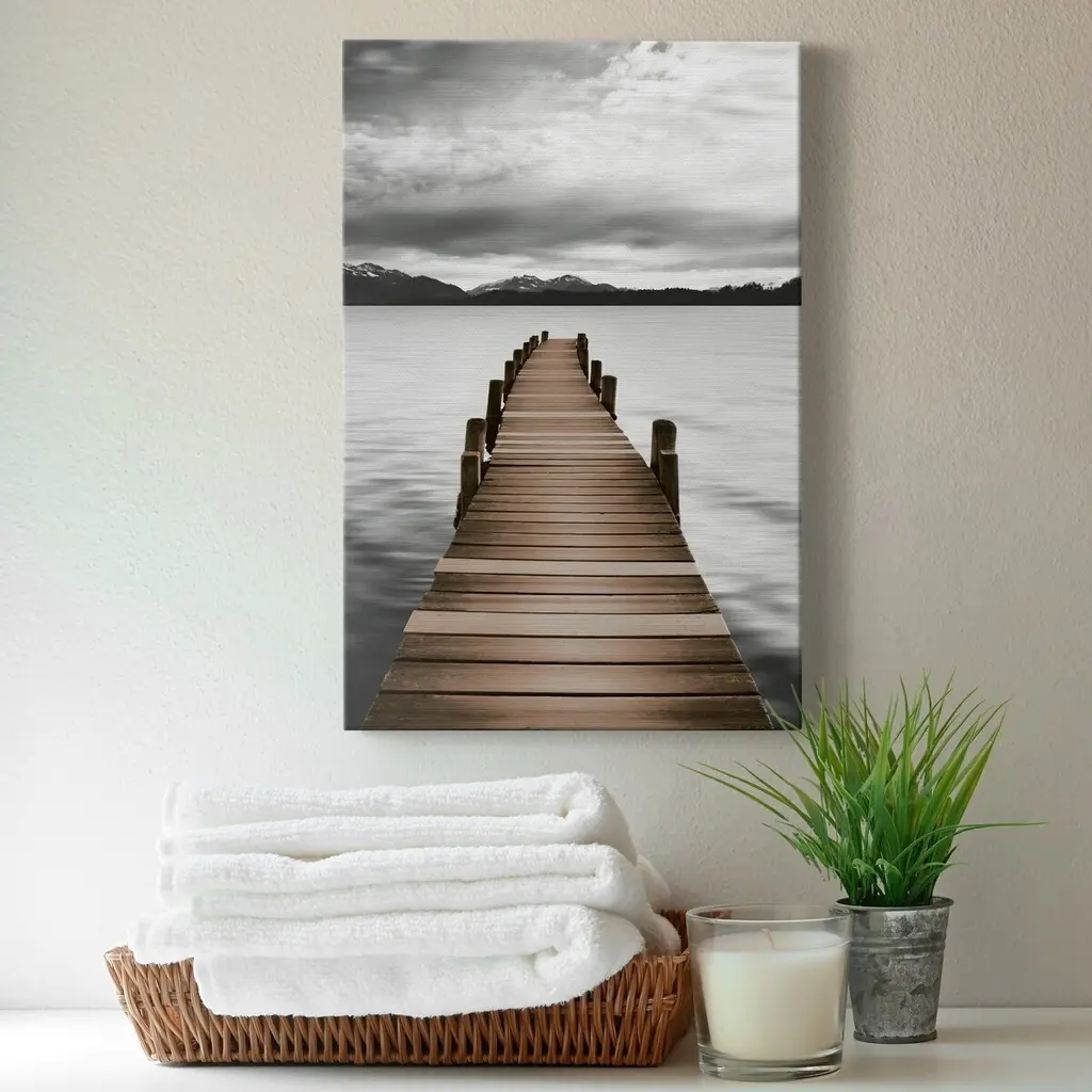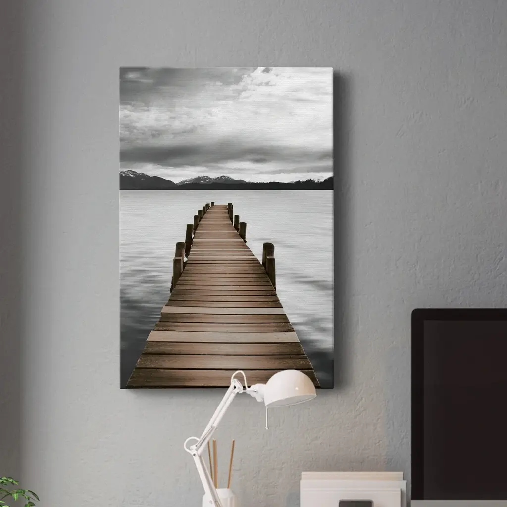 Mountain Jetty Premium Gallery Wrapped Canvas - Ready to Hang A premium hand stretched gallery wrapped canvas print created to last. Featuring a beveled a solid wood stretcher bar, each piece comes ready to hand 5 SIZES AVAILABLE 8''X12'' - Overall Size 16'X20'' - Overall Size 24''x32'' - Overall Size 30''x40'' - Overall Size 36''x48'' - Overall Size Each piece is made to order. Built to Last Each piece comes ready to hang Solid wood stretcher Fade and Water resistant Made domestically