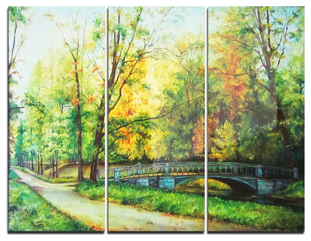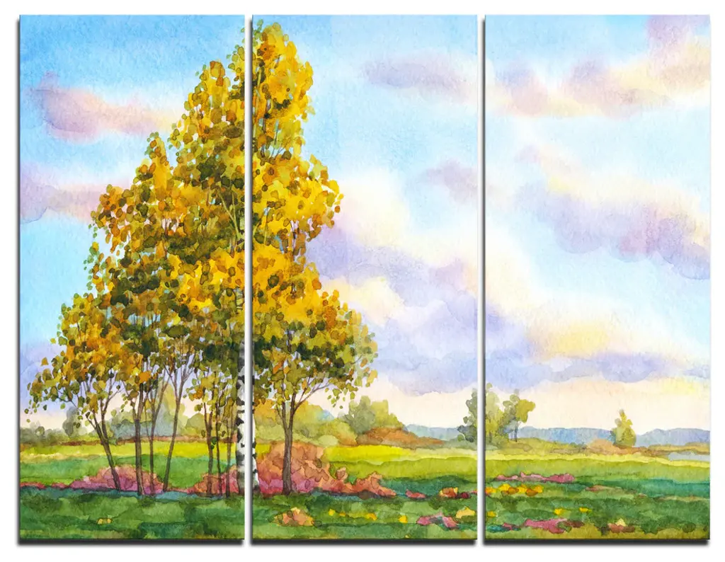 "Mountain Lake In The Fall" Glossy Metal Wall Art, 3 Panels, 36"x28"