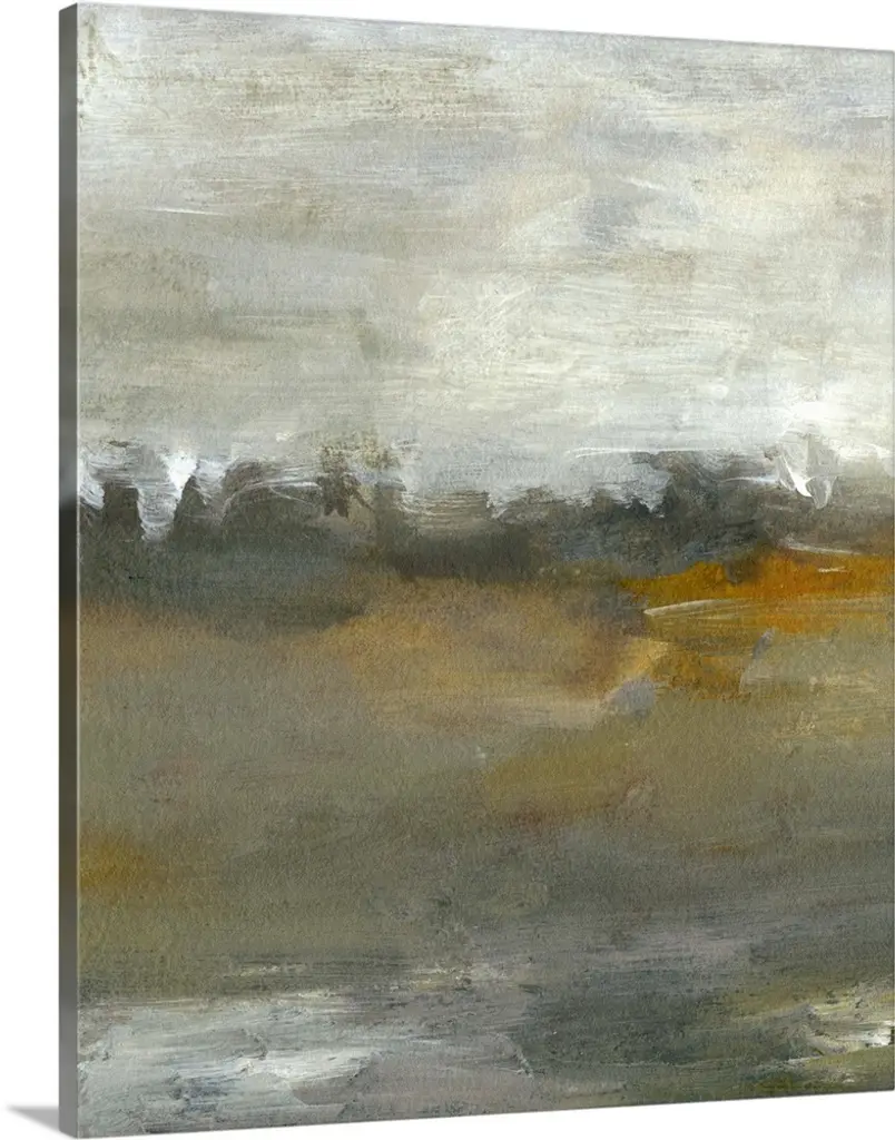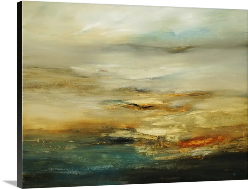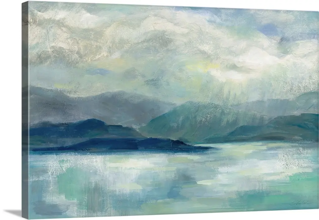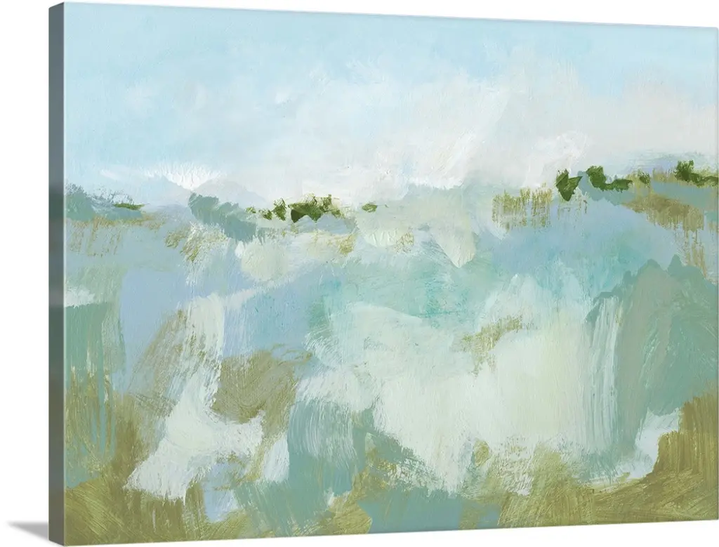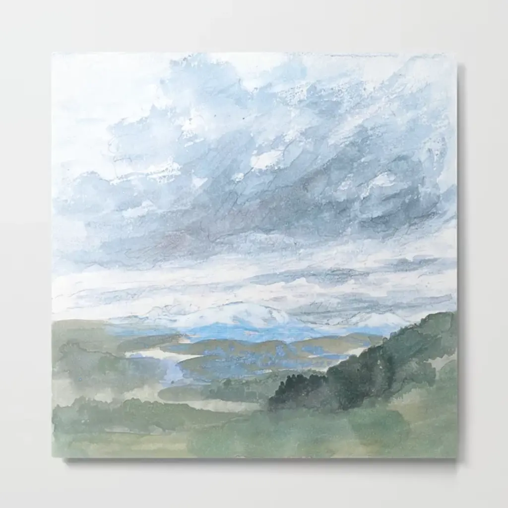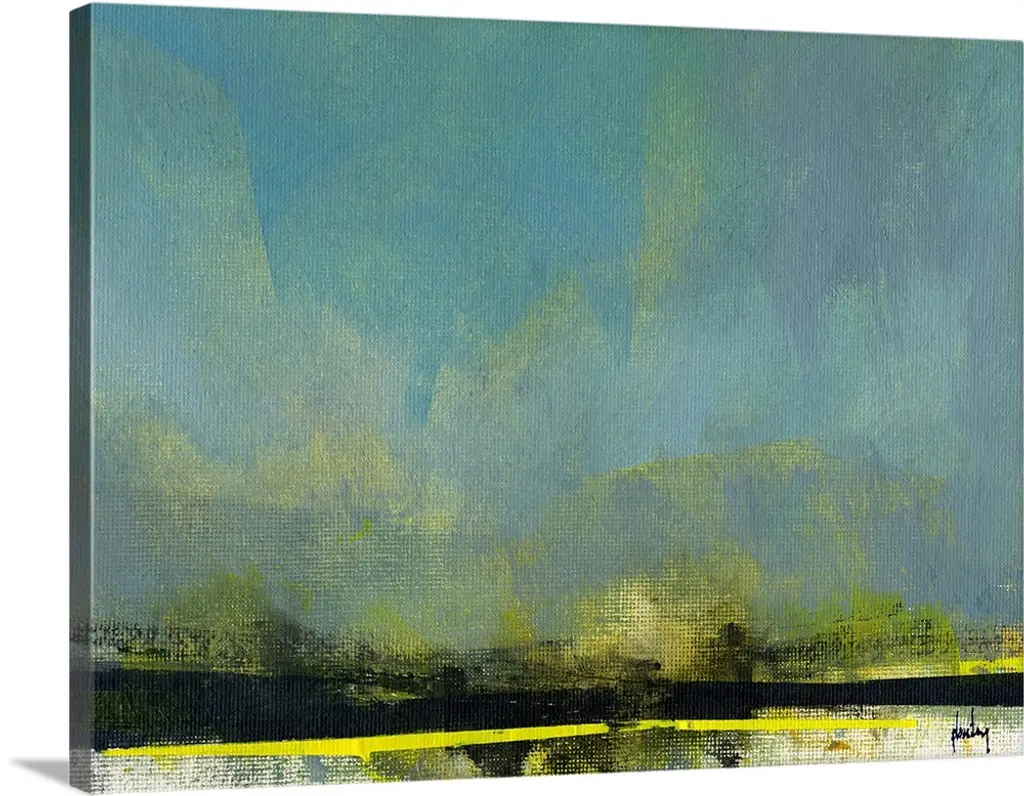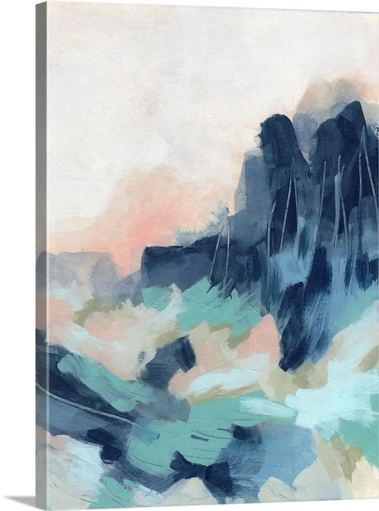 "Mountain Peak Under Cloudy Sky" Landscape Painting Canvas Print, 20"x12"