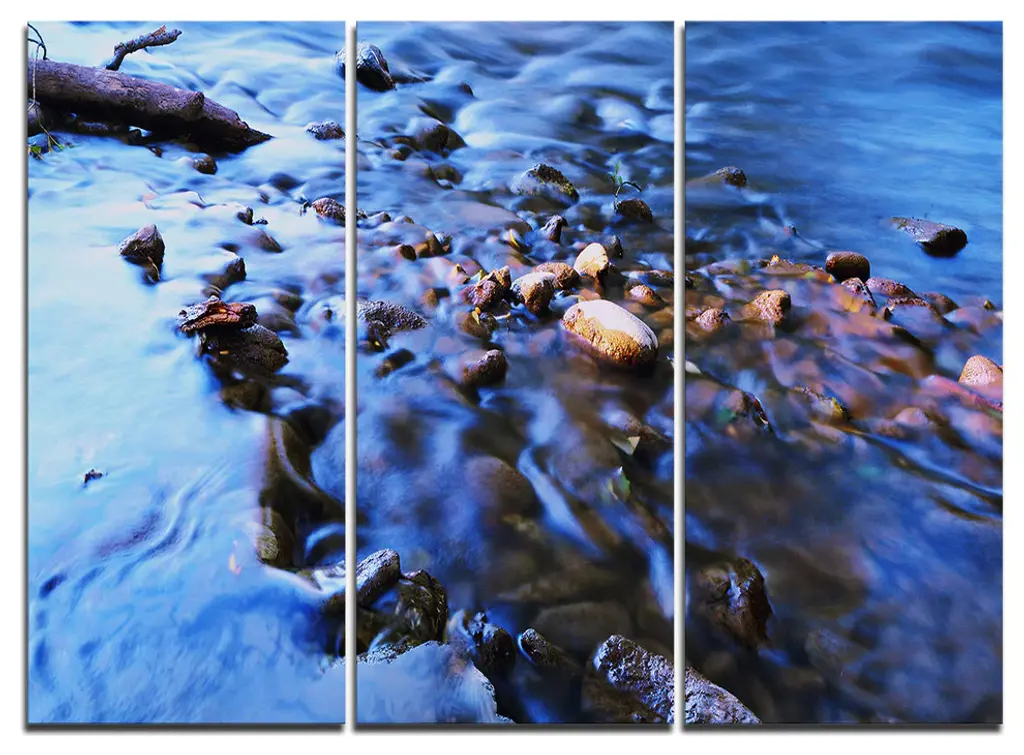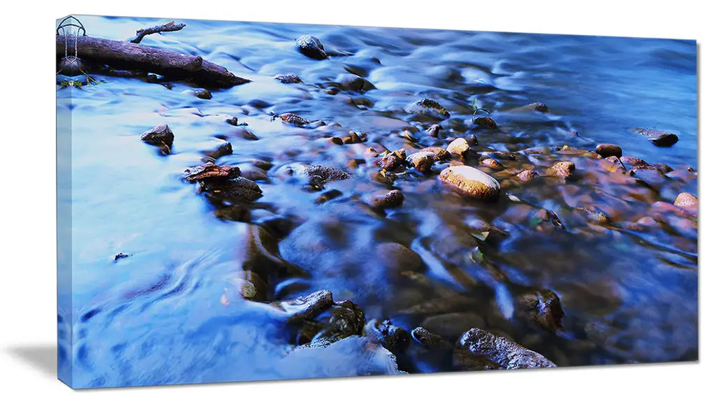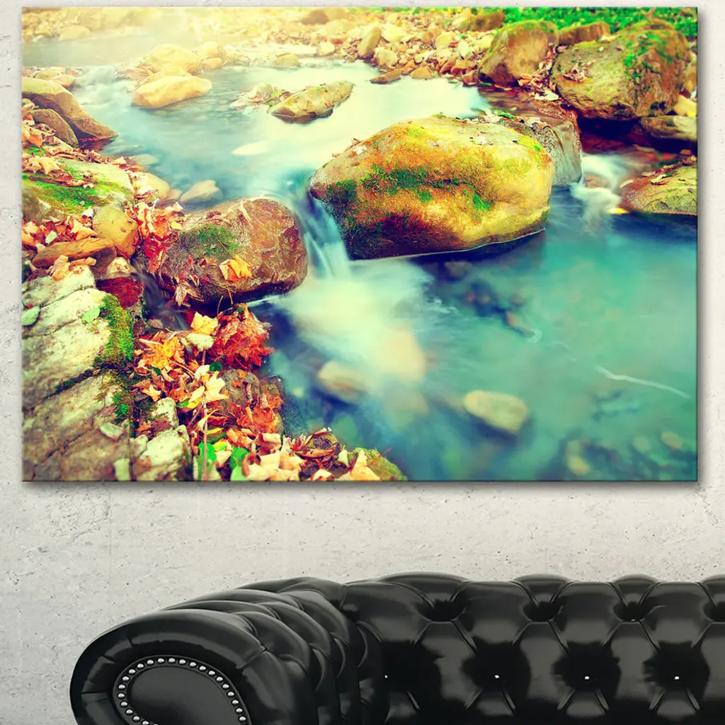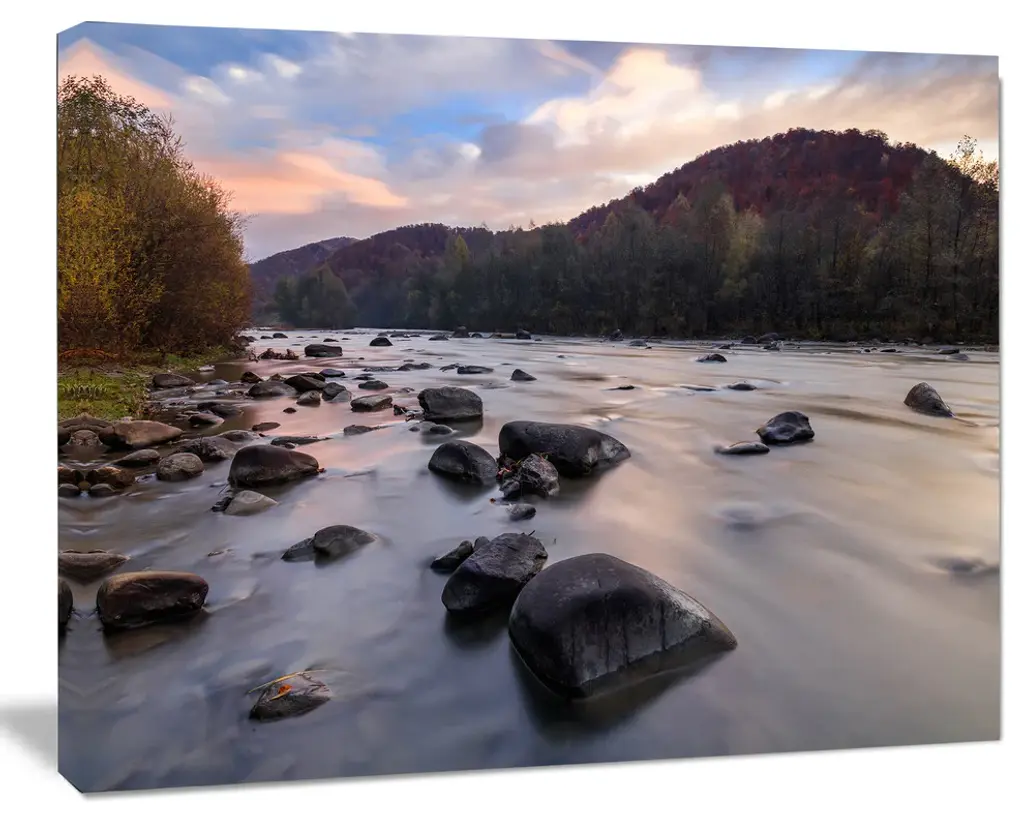 Mountain River With Stones, Large Seashore Canvas Wall Art, 60"x28"