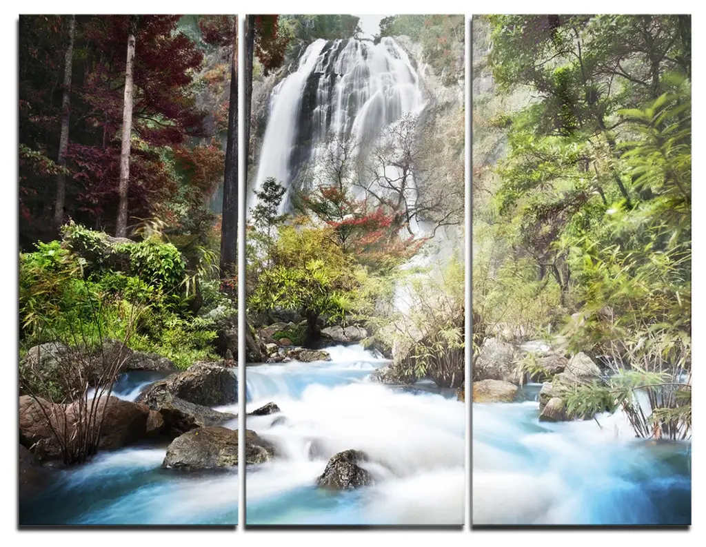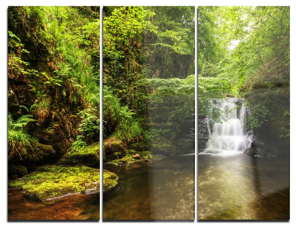 "Mountain Stream In Forest" Photo Metal Wall Art, 3 Panels, 36"x28"