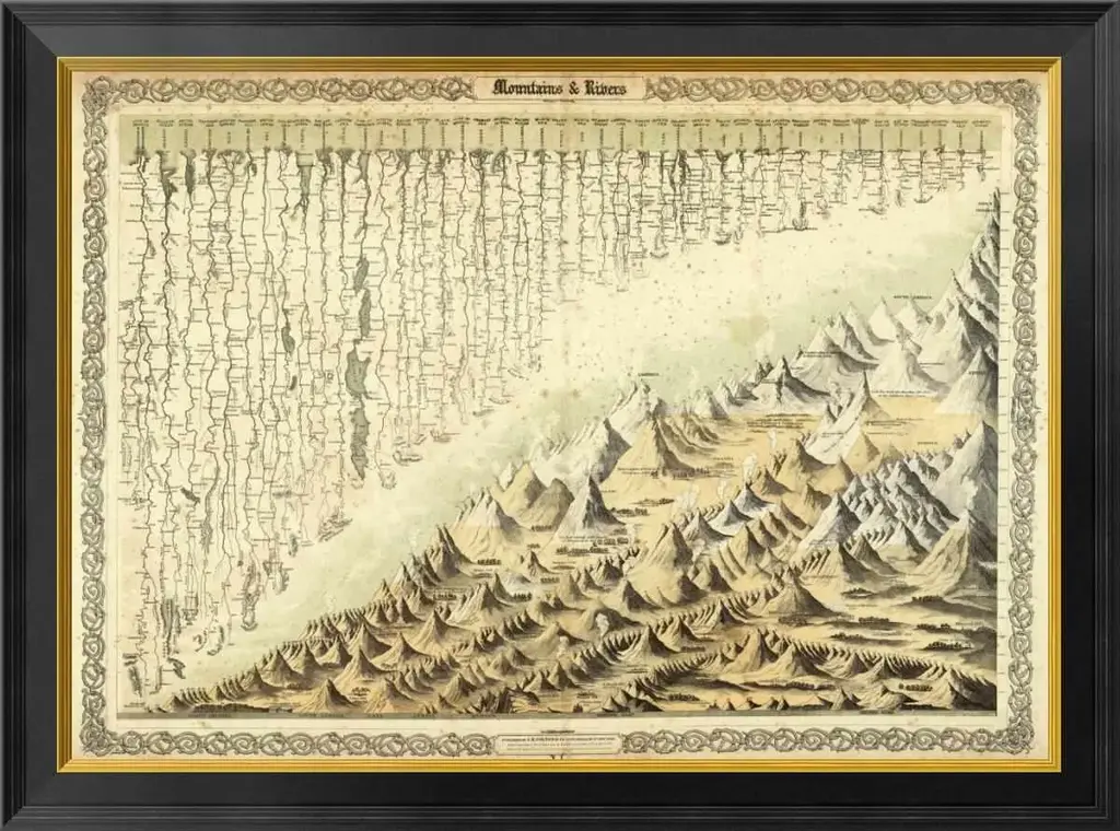 "Mountains & Rivers, 1856" Framed Canvas Giclee By G.w. Colton, 34x25"