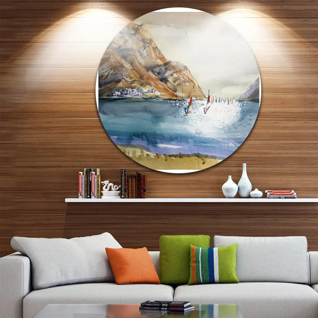 Mountains In Sea, Seascape Disc Metal Wall Art, 11"