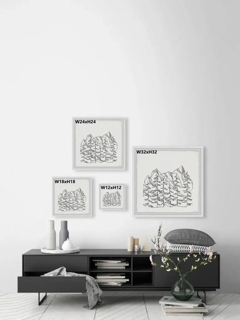 Perfect for lovers of the outdoors, this black and white drawing print features various trees that come together to form a mountain. Proudly printed in the USA, this piece is printed on high quality archive paper and professionally hand-framed. With wall-mounting hooks included, this artful accent is ready to hang up as soon as it reaches your front door.- Top quality Giclee print on high resolution Archive Paper- Hand cut deckled edges- High quality durable non-warping frame- Finished under shatter resistant plexiglass- Arrives ready to hang- Includes a certificate of authenticity- Printed in the USA