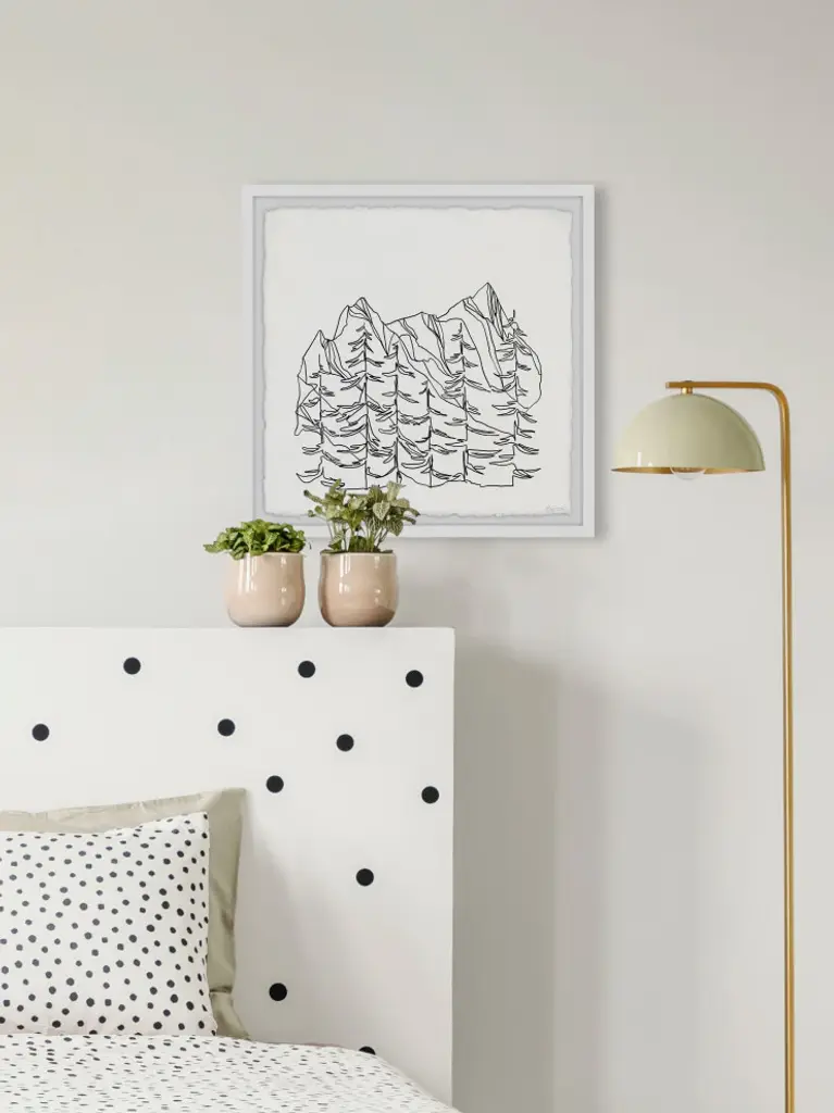 "Mountains Outline" Framed Painting Print, 32x32