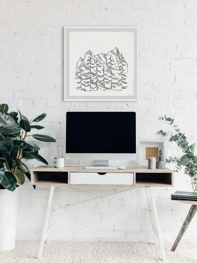 Perfect for lovers of the outdoors, this black and white drawing print features various trees that come together to form a mountain. Proudly printed in the USA, this piece is printed on high quality archive paper and professionally hand-framed. With wall-mounting hooks included, this artful accent is ready to hang up as soon as it reaches your front door.- Top quality Giclee print on high resolution Archive Paper- Hand cut deckled edges- High quality durable non-warping frame- Finished under shatter resistant plexiglass- Arrives ready to hang- Includes a certificate of authenticity- Printed in the USA