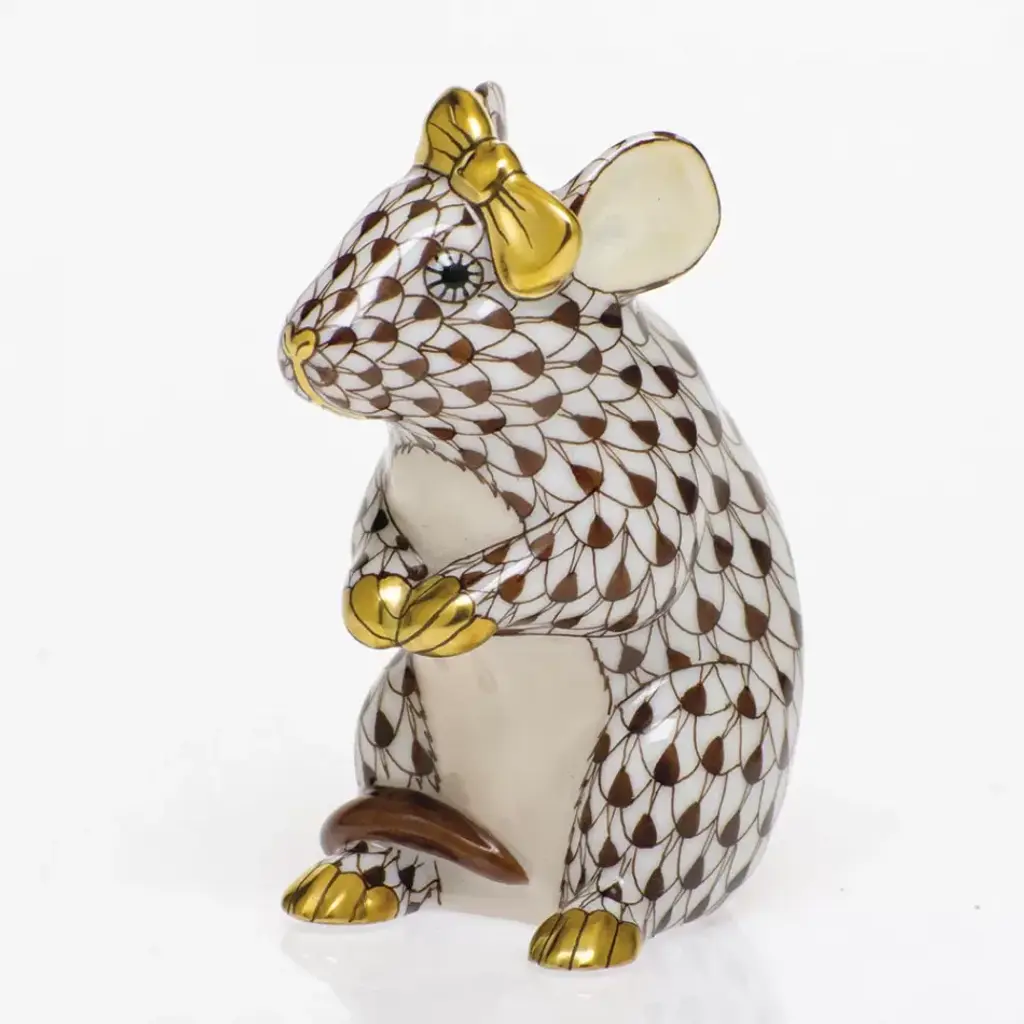 Endearing animals meek and bold, large and small, demure and majestic eagerly await the chance to melt your heart and warm your home. Each is brought to life by the skilled hands of artisans crafting and painting these charming porcelain creatures. The famous fishnet décor adorning many of the animals took form in 1858 when a Herend painter became inspired by a fishscale design he saw on a Chinese porcelain plate and painted a similar pattern onto a rooster figurine to imitate feathers. The rest is history, with the fishnet design now a Herend signature prized worldwide. Now the biggest porcelain manufactory in Europe, Herend was founded in 1826 to produce earthenware in the small Hungarian village for which it was named. At the time, Hungary was flooded with low-cost pottery, but in 1839, Mor Fischer became the Manufactory’s new owner and he decided to focus on producing dinnerware replacement pieces for Europe’s royal families to complement their valuable porcelain patterns from Germany and the Far East. As his client base grew, Fischer commissioned his artists to begin designing dinnerware patterns of their own. Queen Victoria’s 1851 purchase of a large set for Windsor Castle was a milestone, setting the stage for aristocrats throughout Europe to clamor for Herend in their estates. In the 1850s, Herend added meticulously-crafted figurines to its creations. Herend’s trademark fishnet pattern, which is widely recognized and prized as Herend’s signature design, started in 1858 when an artist who was intrigued with a Chinese plate’s fish scale design painted it onto a rooster figurine to imitate feathers.