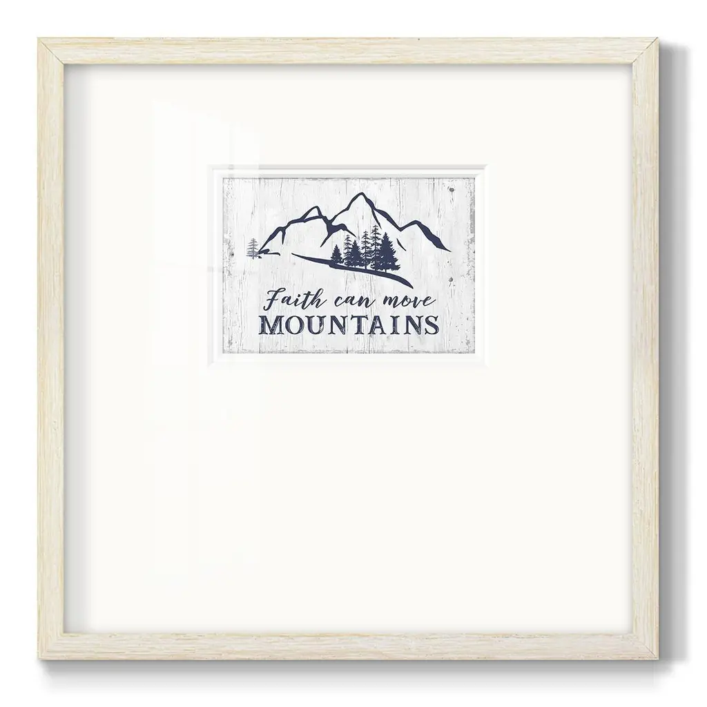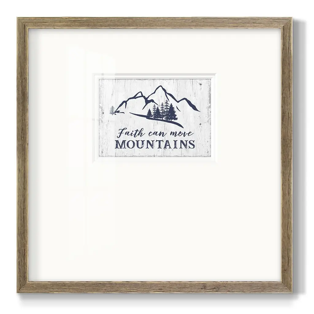 Move MountainsPremium Framed Print A framed cold pressed paper print featuring superior double matting and quality frame. 2 SIZES AVAILABLE 16''X16''' - Overall Size 20''X20''' - Overall Size Each piece is made to order. Each piece comes with hanging hardware. Made in the USA Ready to Hang Giclee Paper Print Plexiglass Beveled Matt Board Double Matte Board