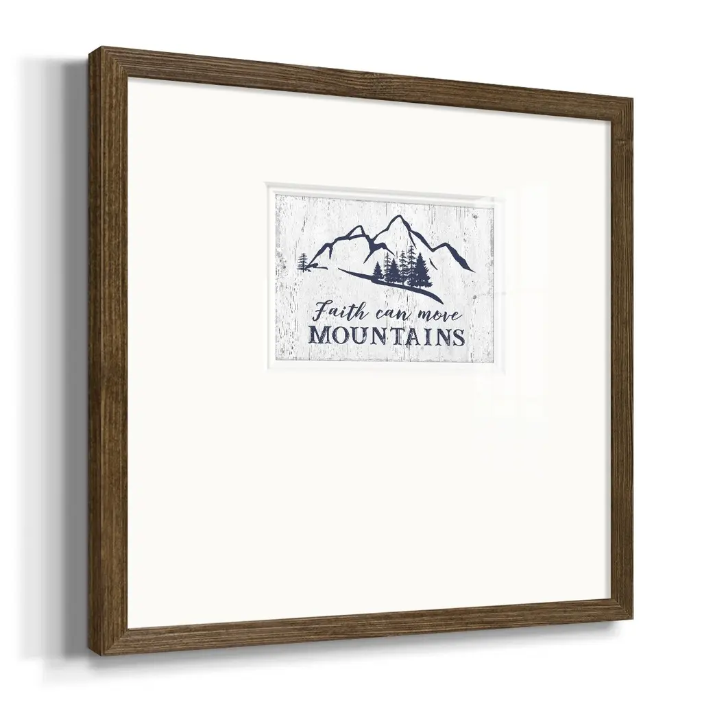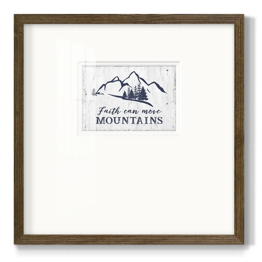 Move MountainsPremium Framed Print A framed cold pressed paper print featuring superior double matting and quality frame. 2 SIZES AVAILABLE 16''X16''' - Overall Size 20''X20''' - Overall Size Each piece is made to order. Each piece comes with hanging hardware. Made in the USA Ready to Hang Giclee Paper Print Plexiglass Beveled Matt Board Double Matte Board