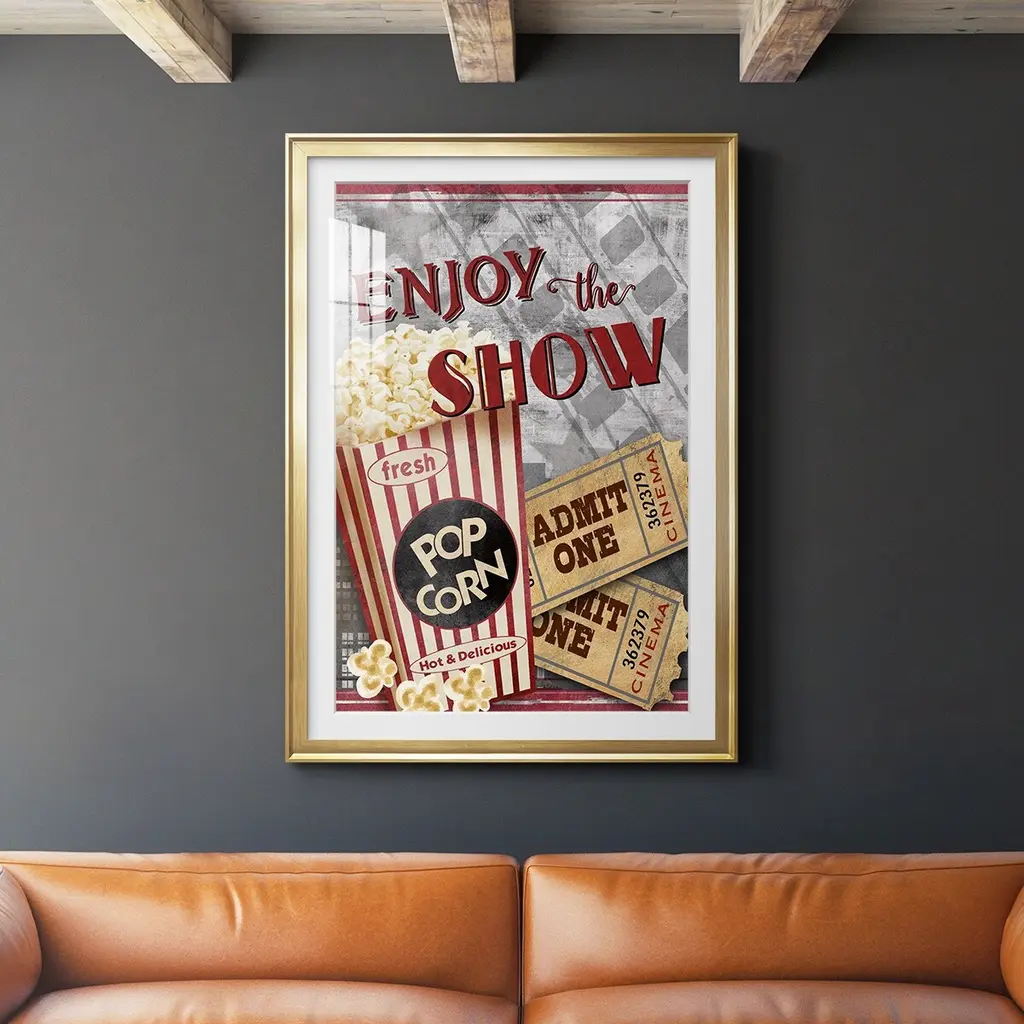 Movie Night I Premium Framed Print - Ready to Hang A Premium Framed Print created to last. Framed in distressed wood and available in an array of sizes and colors Featuring a beveled a solid wood stretcher bar, each piece comes ready to hand 4 SIZES AVAILABLE 30.5''X42.5'' - Overall Size 26.5'X36.5'' - Overall Size 22.5''x30.5'' - Overall Size 18.5''x24.5'' - Overall Size Each piece is made to order. Each piece comes with hanging hardware. Made in the USA Ready to Hang Giclee Paper Print Acrylic Glass Beveled Matt Board