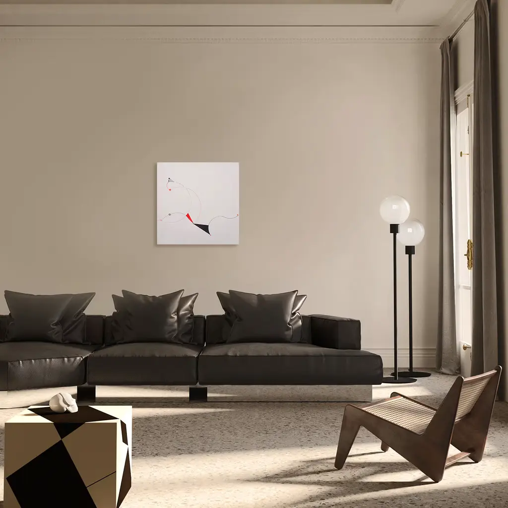 Slim and subtle sinuous lines rendered in black and red brilliantly convey a delicate sense of movement in this mixed media artwork by Maurizia Carantani, a one-off piece from the exclusive collection of 30 oeuvres named "15x15" made in 2015. This precious piece will imbue a contemporary interior with unprecedented style.