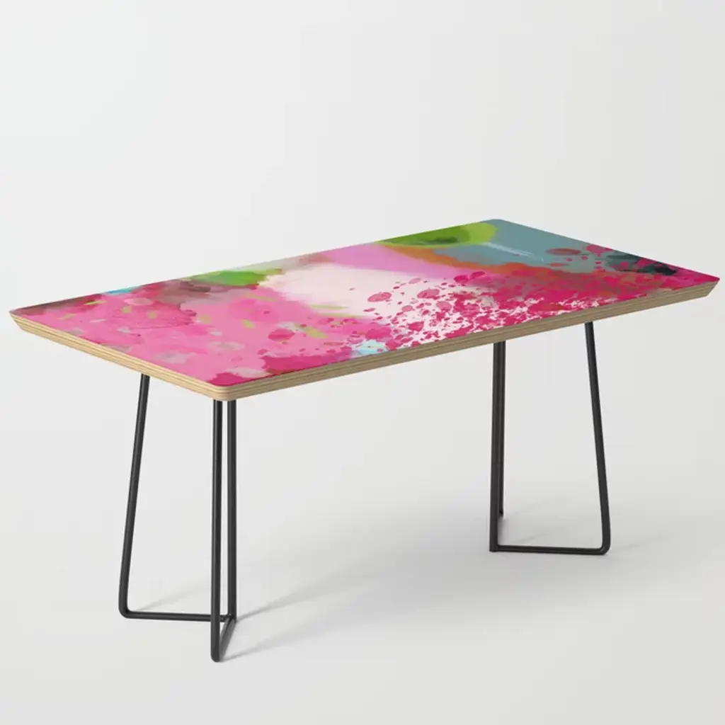 35.75" x 17.75" x 17" (H)Baltic birch table top with beveled edgeHigh quality print with satin finishSteel legs available in black or goldAssembly requiredEvery order is made just for youSHIPPING: Items are made to order and typically ship within 3-4 business days. Click here for more information about delivery options.Furniture sales are final. Click here for more information on returns.