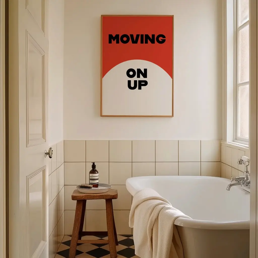 Moving On Up Art PrintAvailable in sizes A2 (420 x 594 mm)A3 (297 x 420 mm)A4 (210 x 297 mm) All in the detailsSold without frameDesigned by Fanclub owners and sisters, Johanna and Felicity.Giclée printed in Nottingham UK on Munken pure smooth cream paper which is certified by the Rainforest Alliance Program for FSC® Standards.All A4 & A3 prints are packed in eco friendly 100% biodegradable poly bags A2 prints are shipped in cardboard tubes.Designed by Fanclub owners and sisters, Johanna and Felicity in our UK studio.