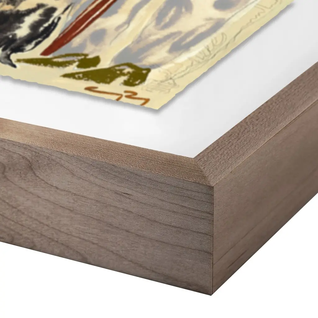 Austin figurative painter Caroline Pinney explores intimacy and human relationships in her art brut-evocative pieces. Working with a range of mediums, from oil stick and charcoal to coffee and spray paint, she often uses her own hand to manipulate materials. Printed on premium paper and float-mounted within a rustic walnut frame. Handmade in Austin, Texas.