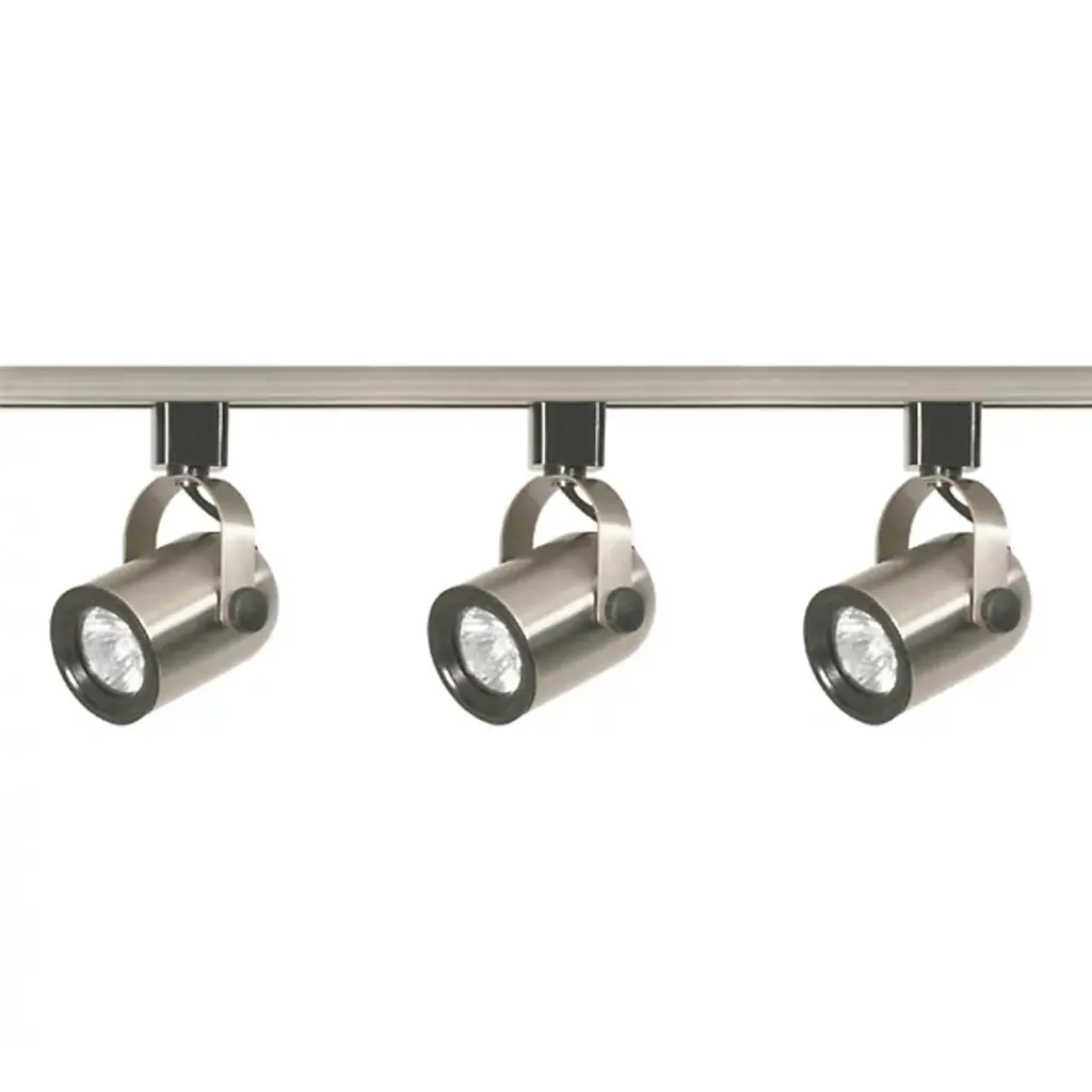 The Satco MR16 Roundback 3 Light Track Kit brightens interior spaces by providing adjustable, direct lighting in line voltage applications. The MR16 Roundback Kit utilizes halogen lamping, a bright, white light that is an excellent choice for highlighting artwork.