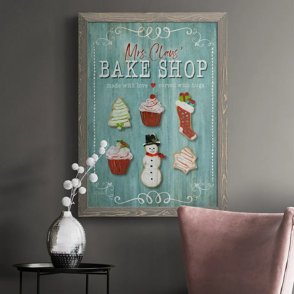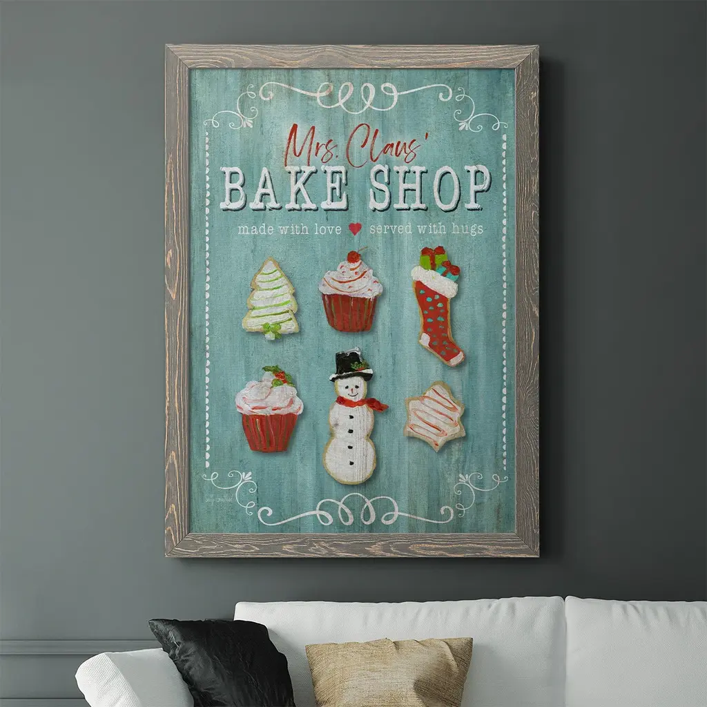 Mrs. Claus Bake Shop-Premium Framed Canvas - Ready To Hang - 27.5x37.5 - Walnut