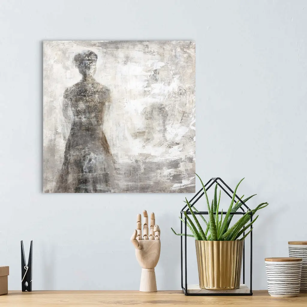 Contemporary abstract painting using dark neutral tones and a smokey form.