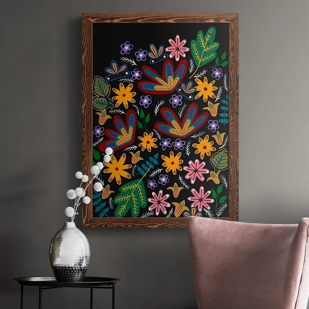 Muddled Flowers I-Premium Framed Canvas - Ready To Hang - 27.5x37.5 - Walnut