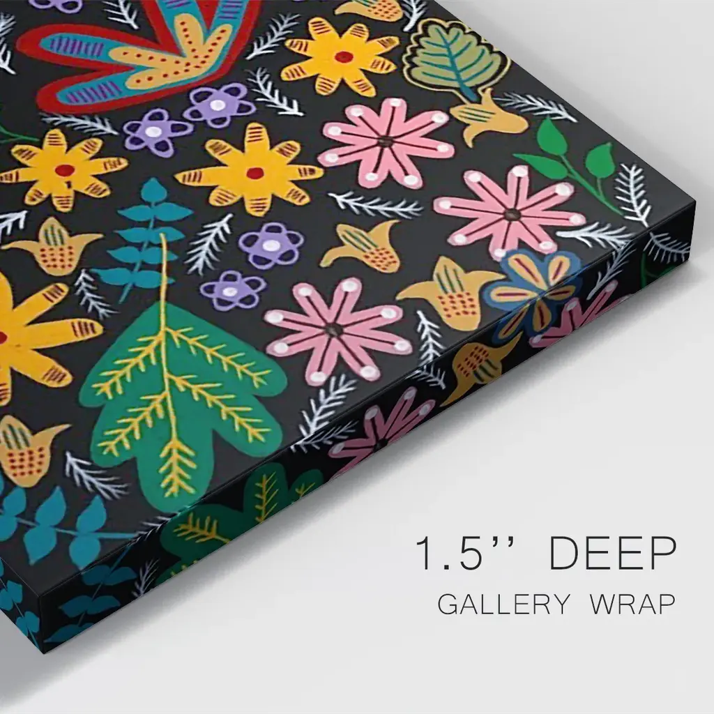 Muddled Flowers I Premium Gallery Wrapped Canvas - Ready to Hang A premium hand stretched gallery wrapped canvas print created to last. Featuring a beveled a solid wood stretcher bar, each piece comes ready to hand 6 SIZES AVAILABLE 8''X12'' - Overall Size 12''X18'' - Overall Size 18''X27'' - Overall Size 24''x36'' - Overall Size 32''x48'' - Overall Size 40''x60'' - Overall Size Each piece is made to order. Built to Last Each piece comes ready to hang Solid wood stretcher Fade and Water resistant Made domestically