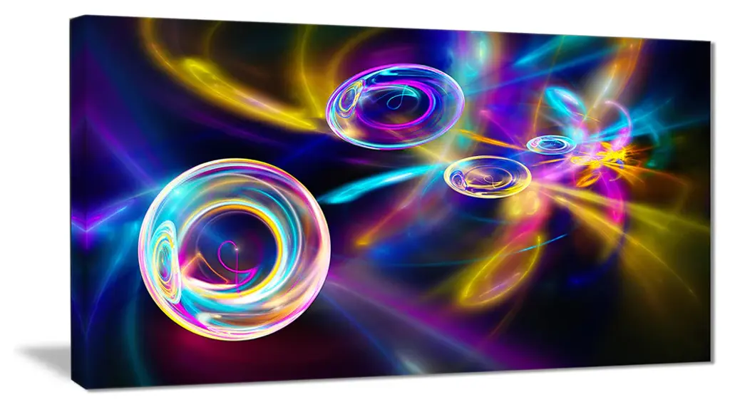 Multi Color Fractal Spherical Bubbles, Oversized Abstract Canvas Print, 60x40