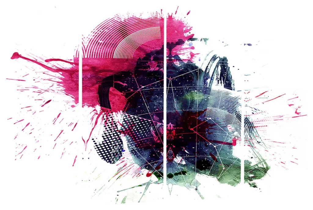 "Multicolor Abstract Stain" Canvas Print, 4 Panels, 48"x28"