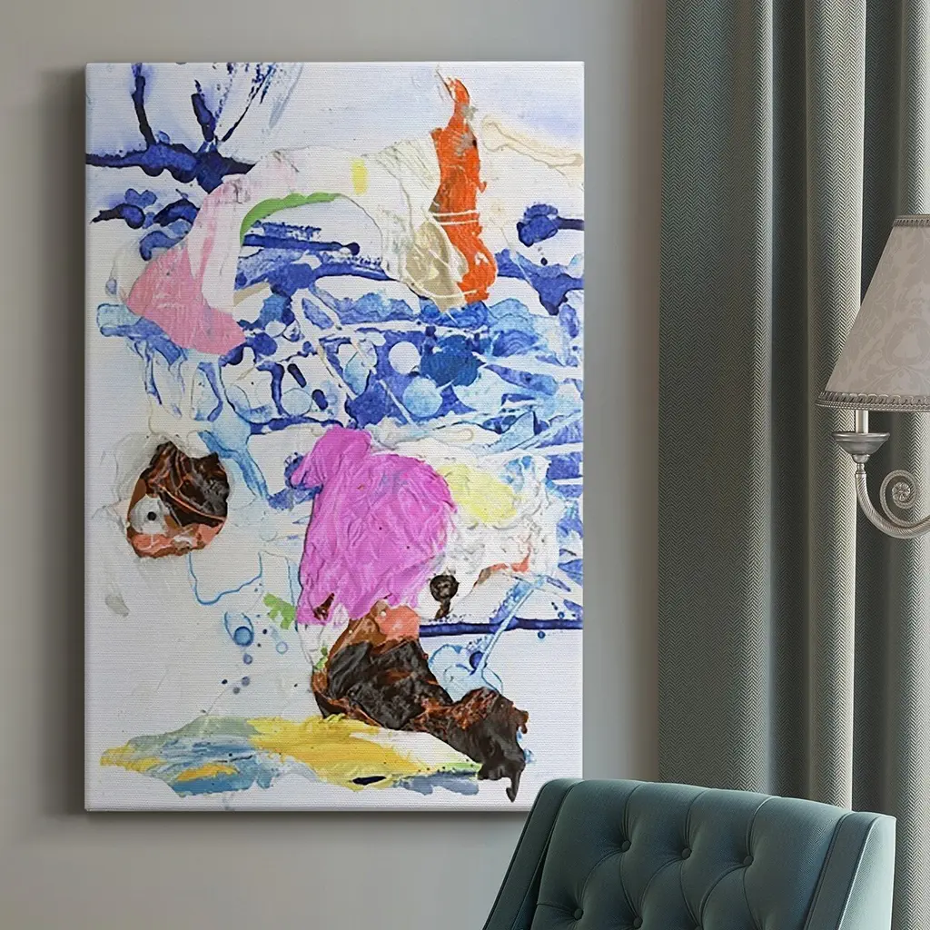 Multicolor Abstract Tall Painting Signed By Balinese Artist- Blast And Bless Ii
