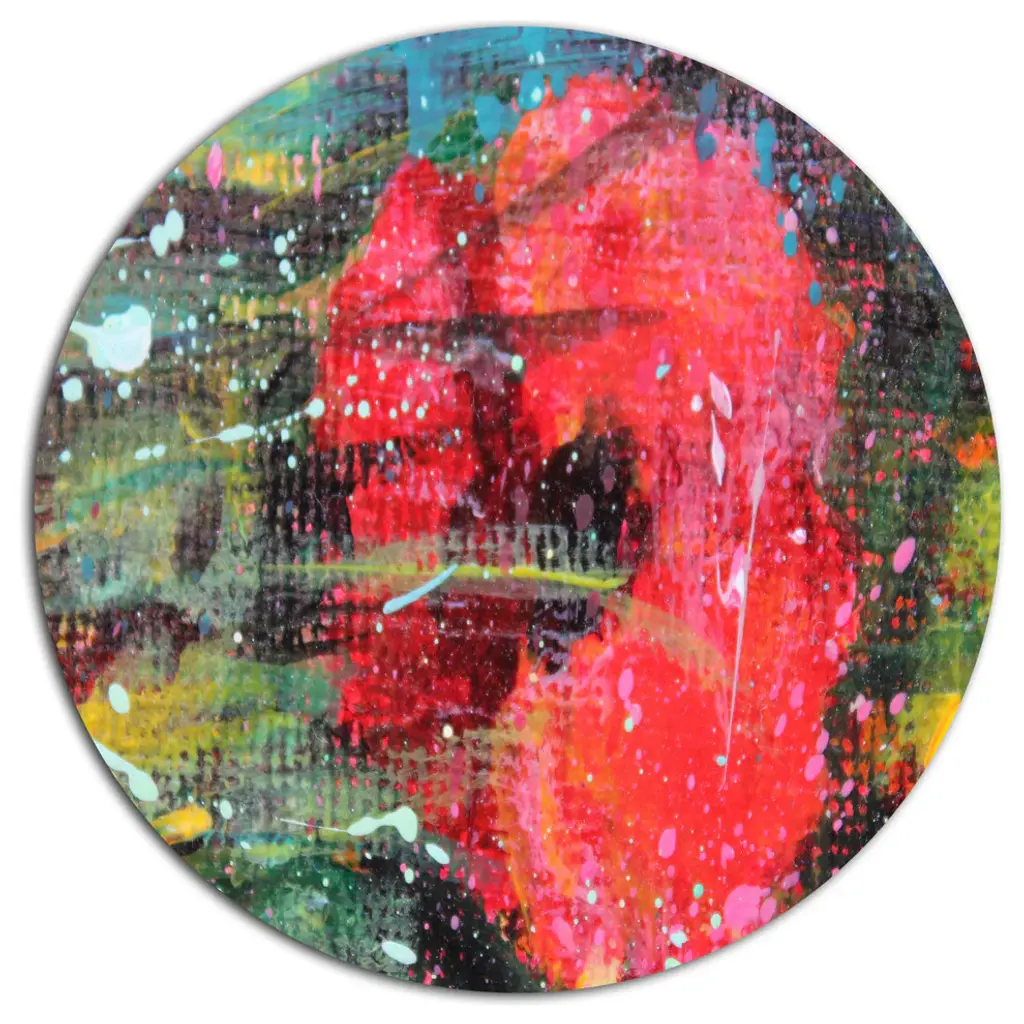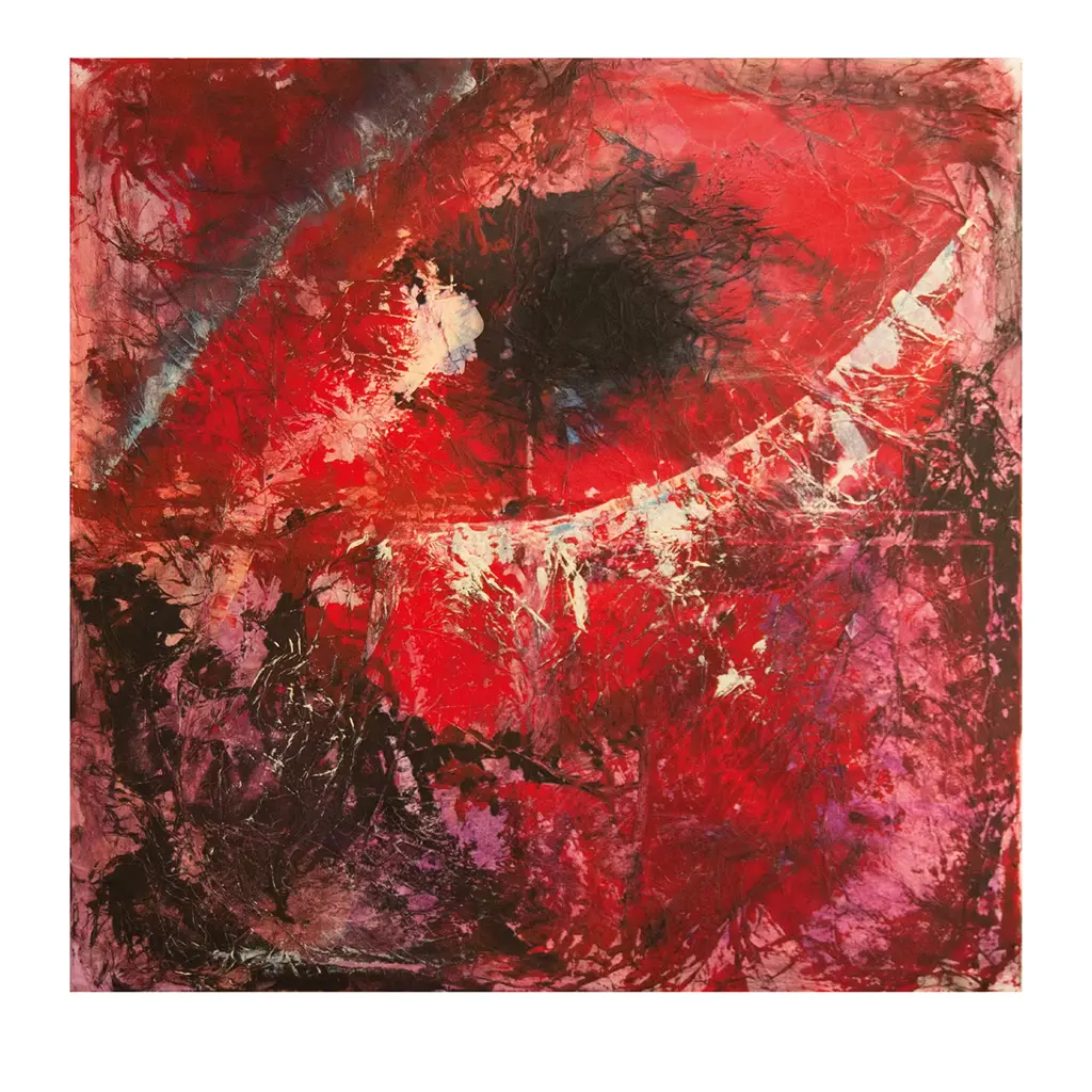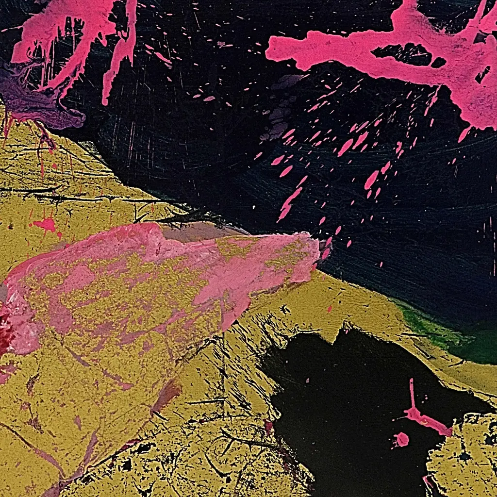 Hot pink appears like thunder and lightning on this abstract painting by Balinese artist Ketut Sugantika. "Sometimes things need to be blown and blasted for the sake of renewing things, and 'blessed' for the new to be better. If an artwork made with a spontaneous effect is the 'blast,' and is always enjoyable to look at, then accepting whatever happens from such blast is therefore a 'blessing'," says the Balinese artist as he explains the title of his inspired composition. Sugantika paints with acrylics, adding gold paint to his palette of black, red, and green.