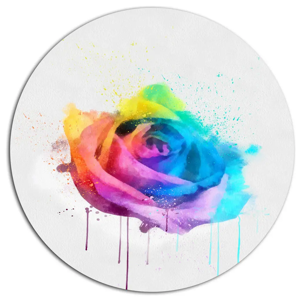 Multicolor Rose With Color Splashes, Floral Round Wall Art, 36"