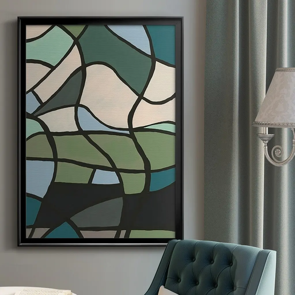 Multicolor Stained Glass II Premium Framed Print - Ready to Hang A Premium Framed Print created to last. Framed in distressed wood and available in an array of sizes and colors Featuring a beveled a solid wood stretcher bar, each piece comes ready to hand 4 SIZES AVAILABLE 30.5''X42.5'' - Overall Size 26.5'X36.5'' - Overall Size 22.5''x30.5'' - Overall Size 18.5''x24.5'' - Overall Size Each piece is made to order. Each piece comes with hanging hardware. Made in the USA Ready to Hang