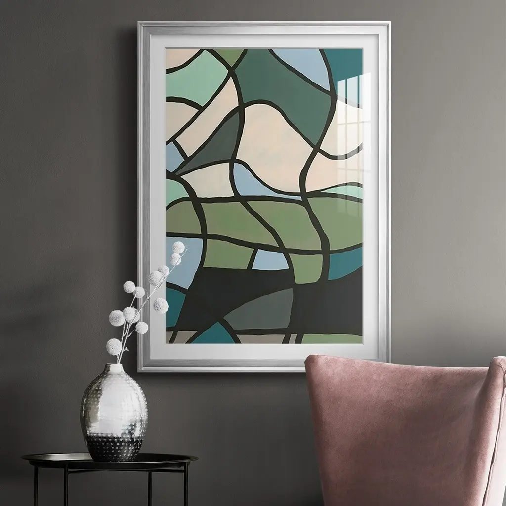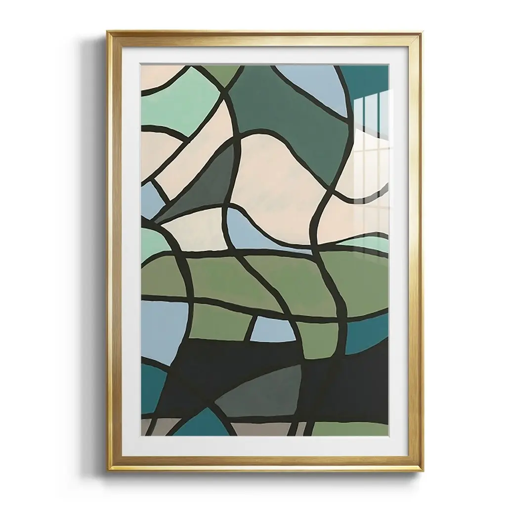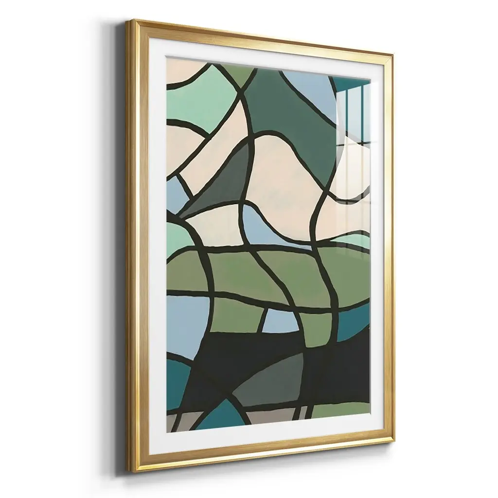 Multicolor Stained Glass II Premium Framed Print - Ready to Hang A Premium Framed Print created to last. Framed in distressed wood and available in an array of sizes and colors Featuring a beveled a solid wood stretcher bar, each piece comes ready to hand 4 SIZES AVAILABLE 30.5''X42.5'' - Overall Size 26.5'X36.5'' - Overall Size 22.5''x30.5'' - Overall Size 18.5''x24.5'' - Overall Size Each piece is made to order. Each piece comes with hanging hardware. Made in the USA Ready to Hang Giclee Paper Print Acrylic Glass Beveled Matt Board