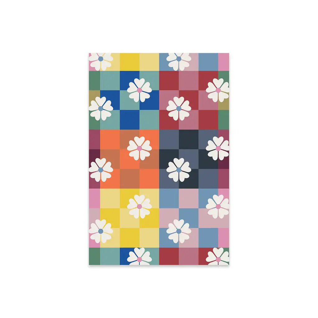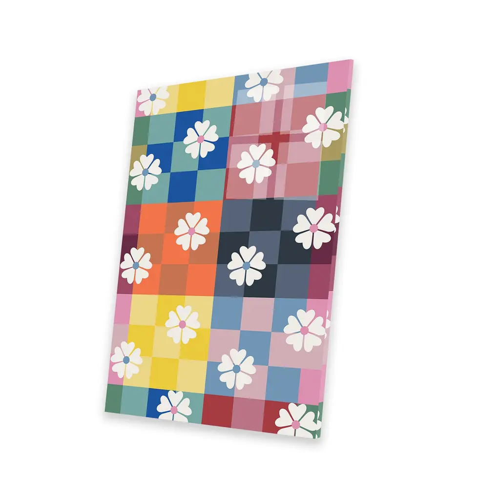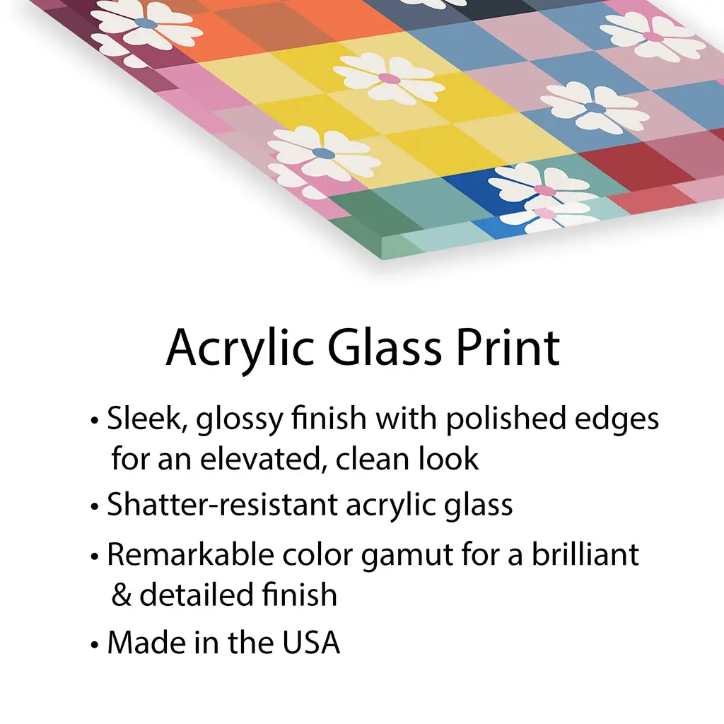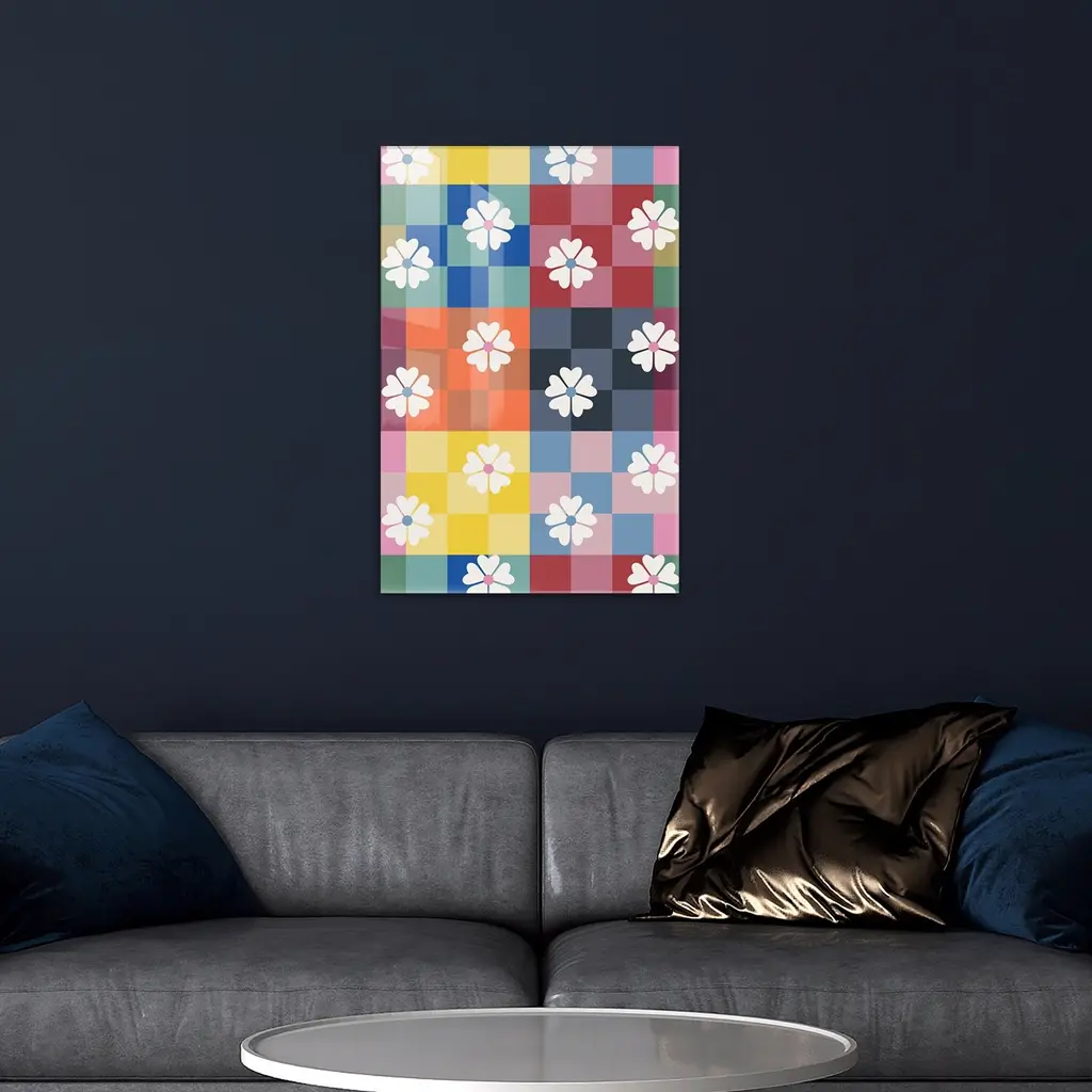 Multicolored Checker And Daisies Print On Acrylic Glass By Show Me Mars - 24x16x0.25